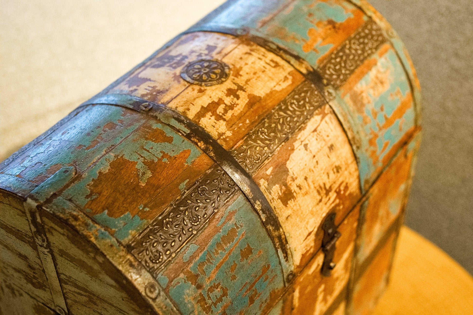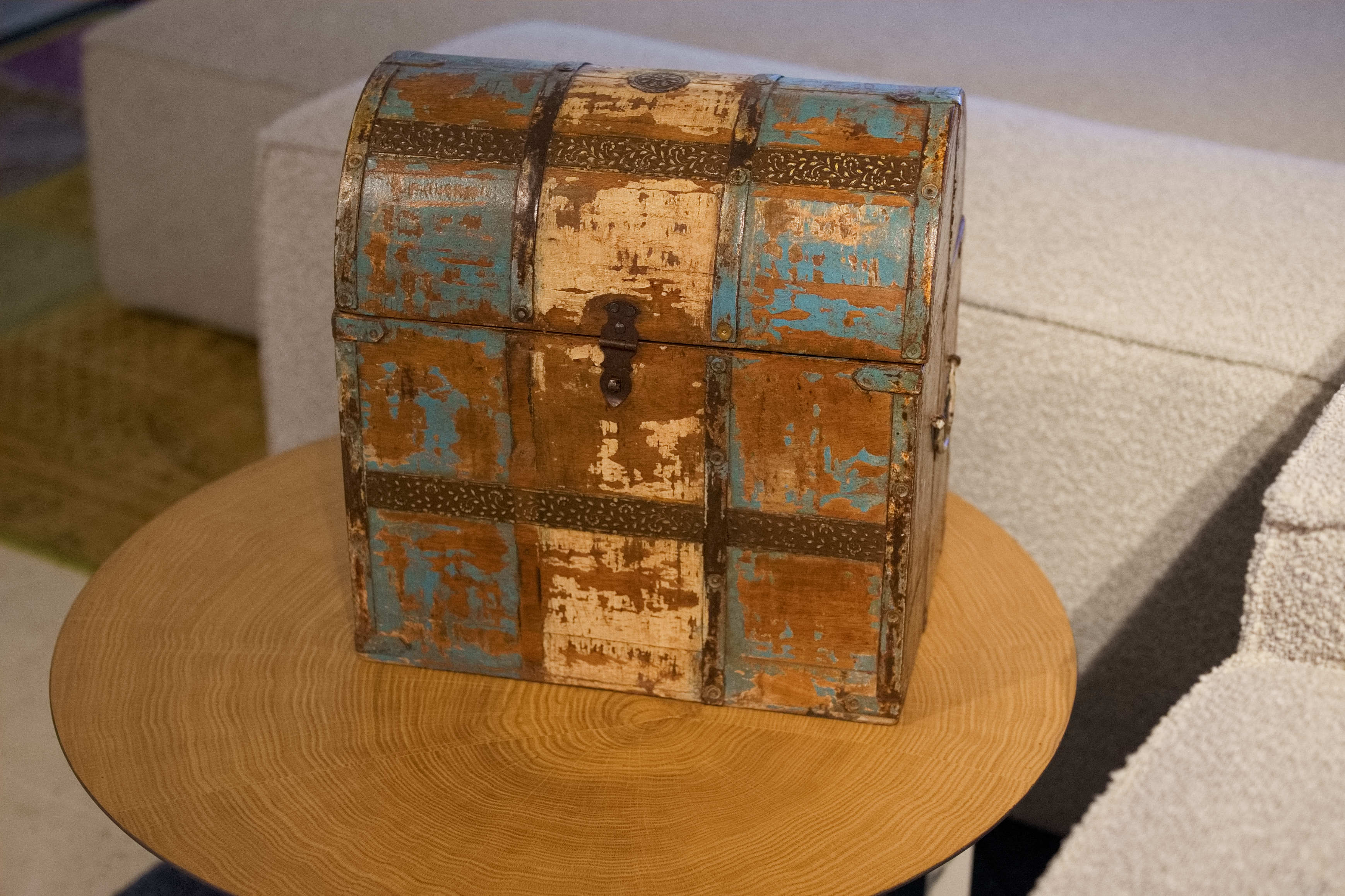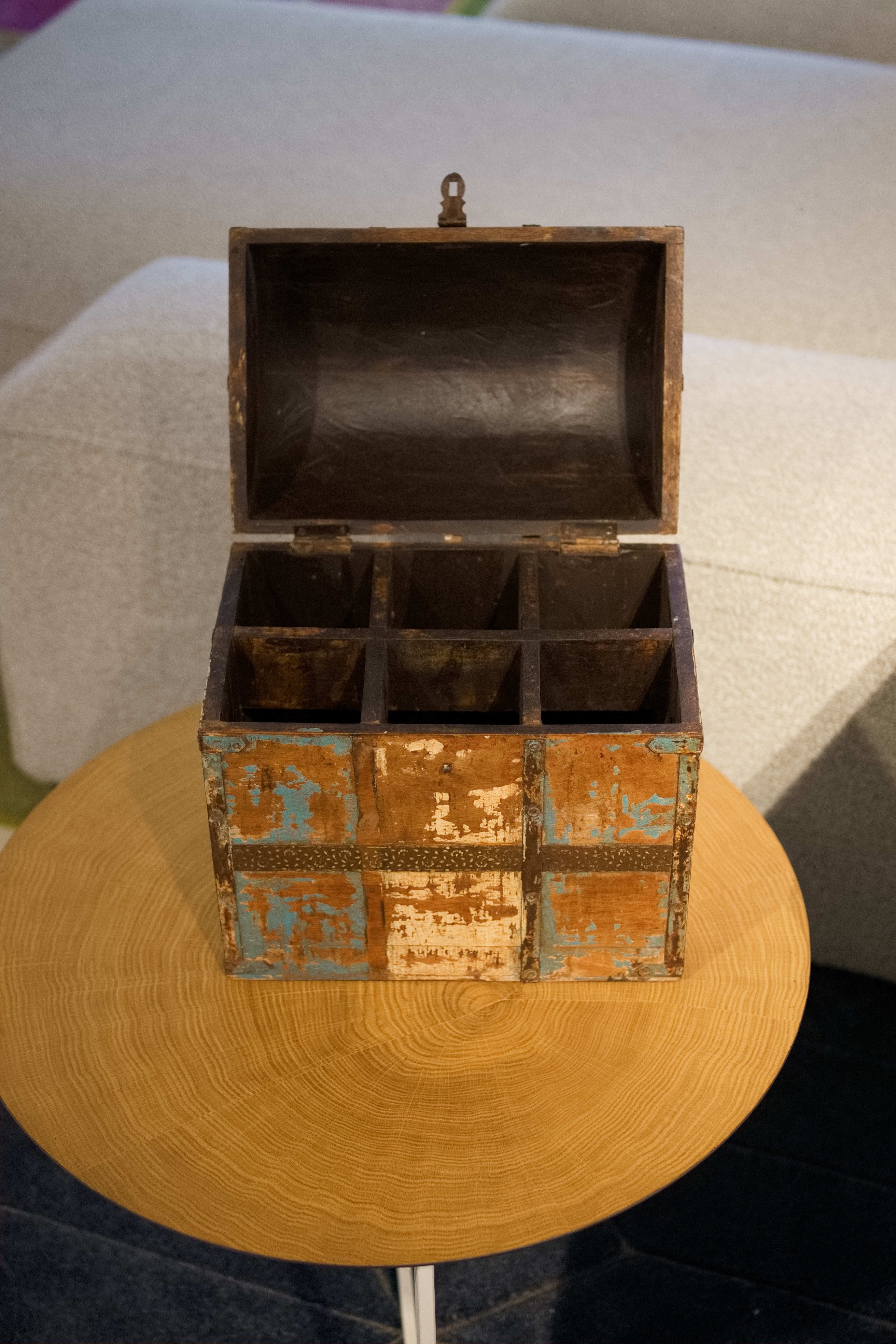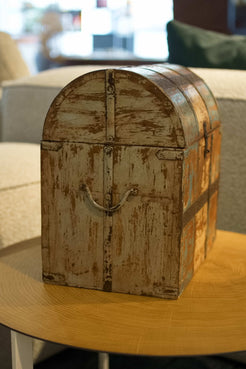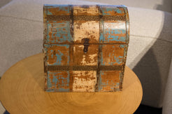 Scatola, box, bauletto indiano in legno di teak e metallo