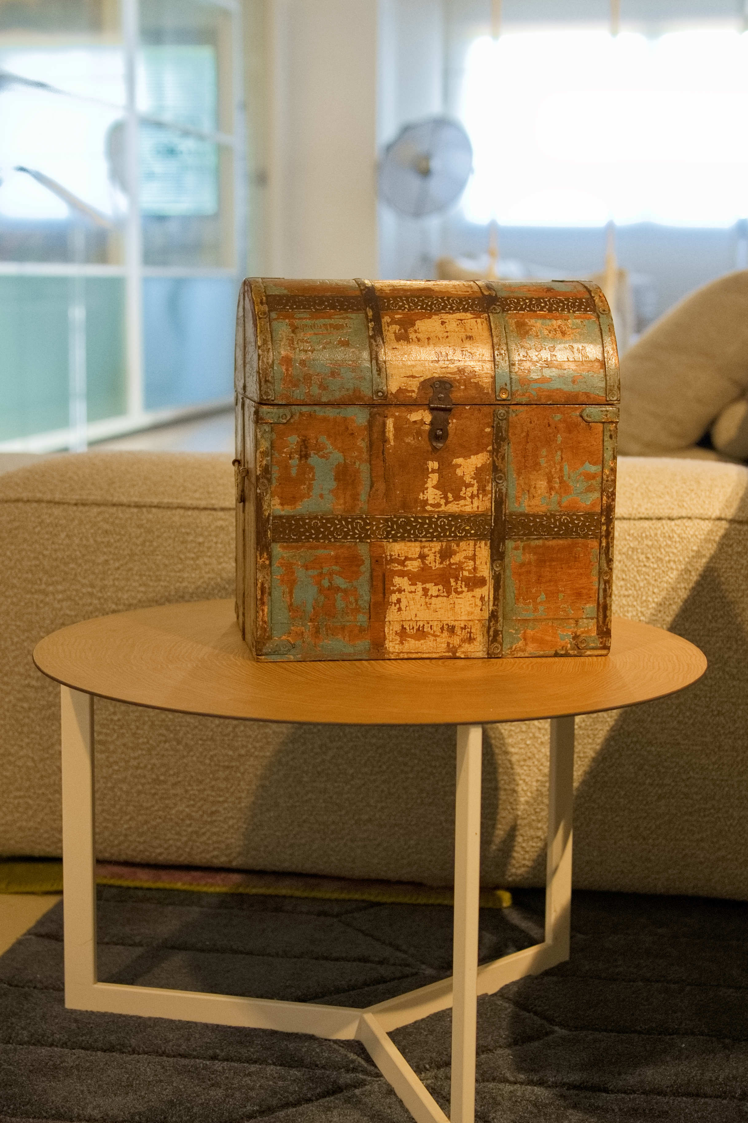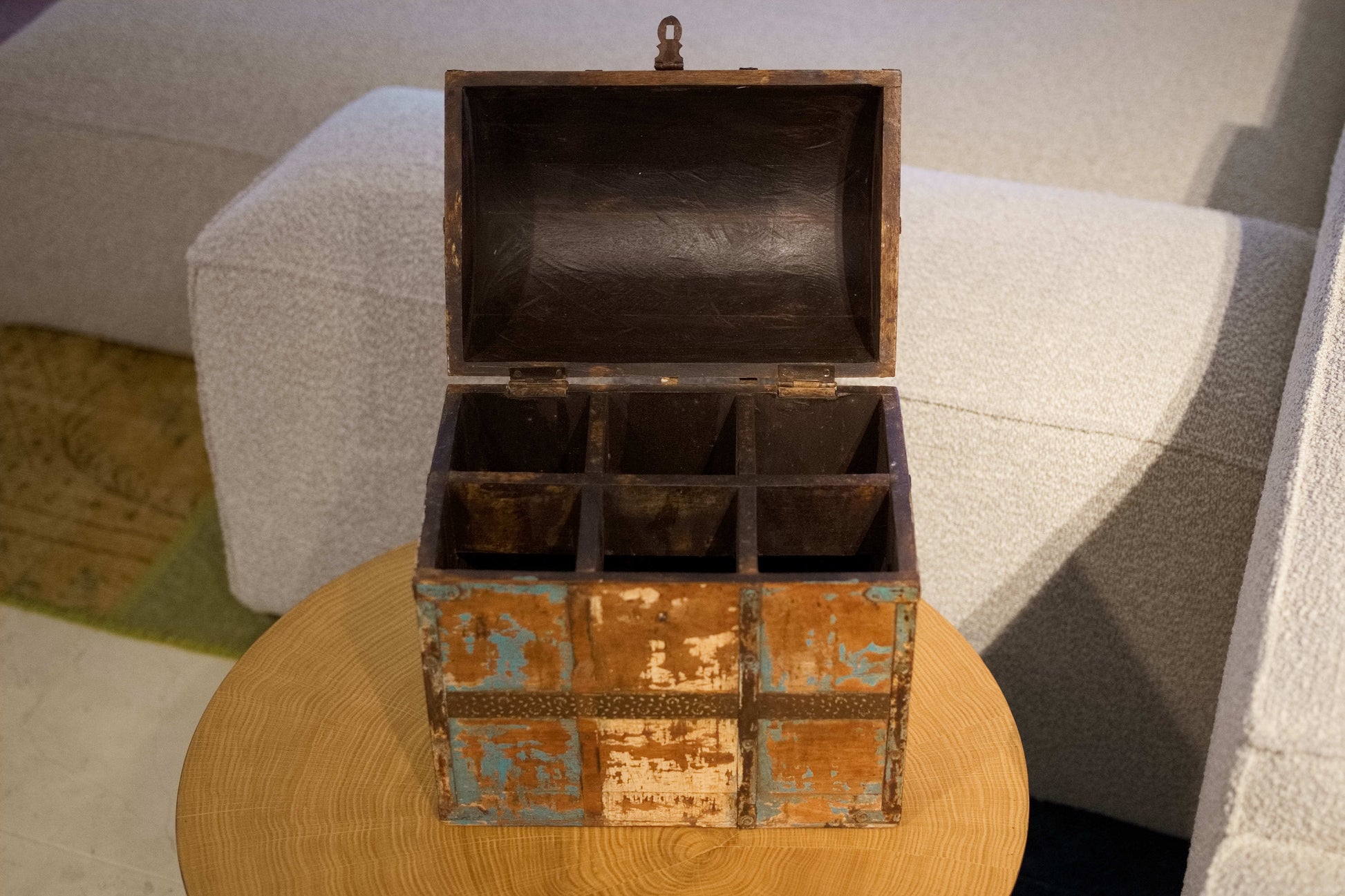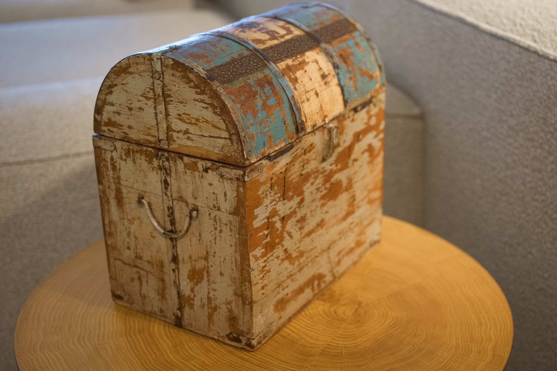Scatola, box, bauletto indiano in legno di teak e metallo