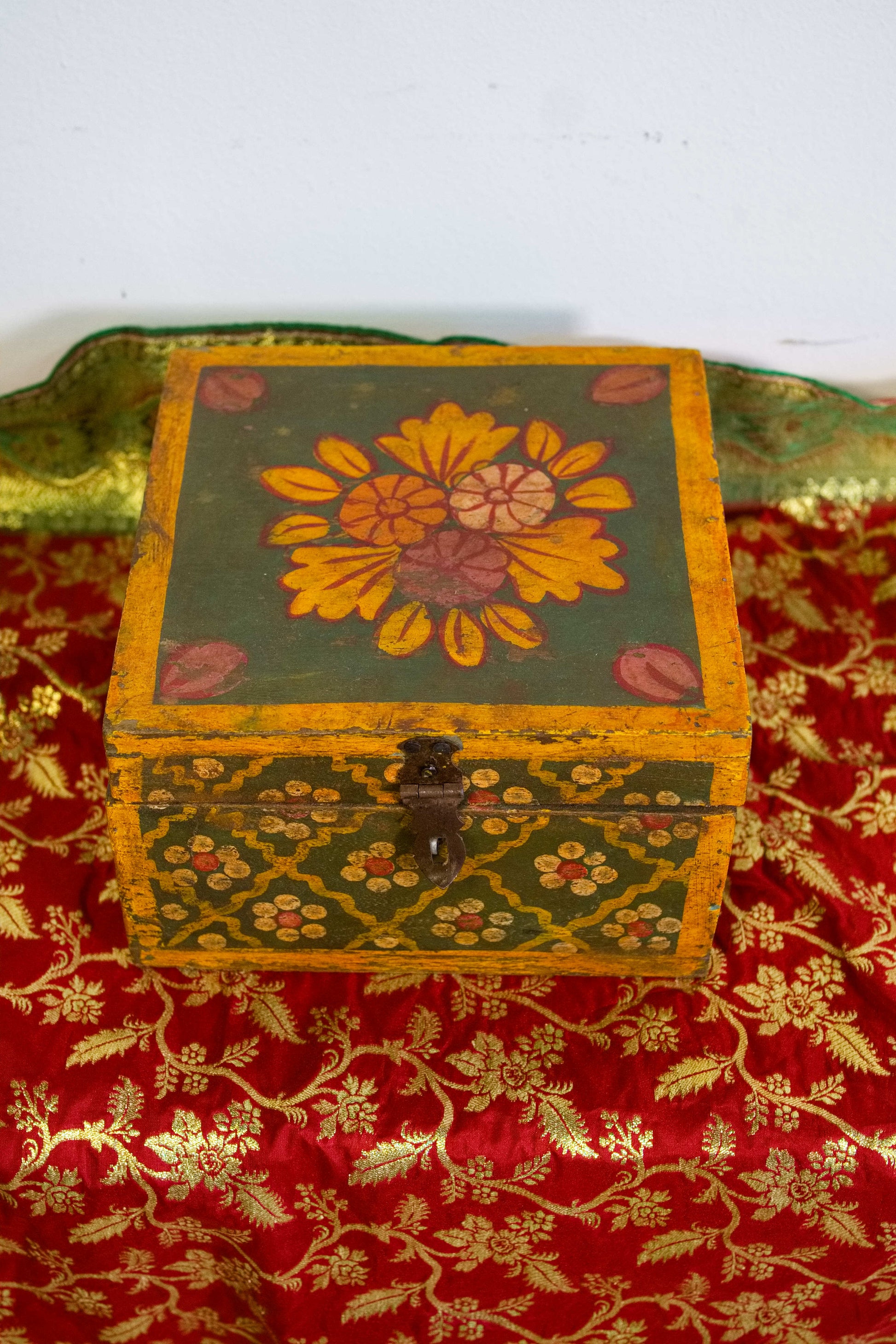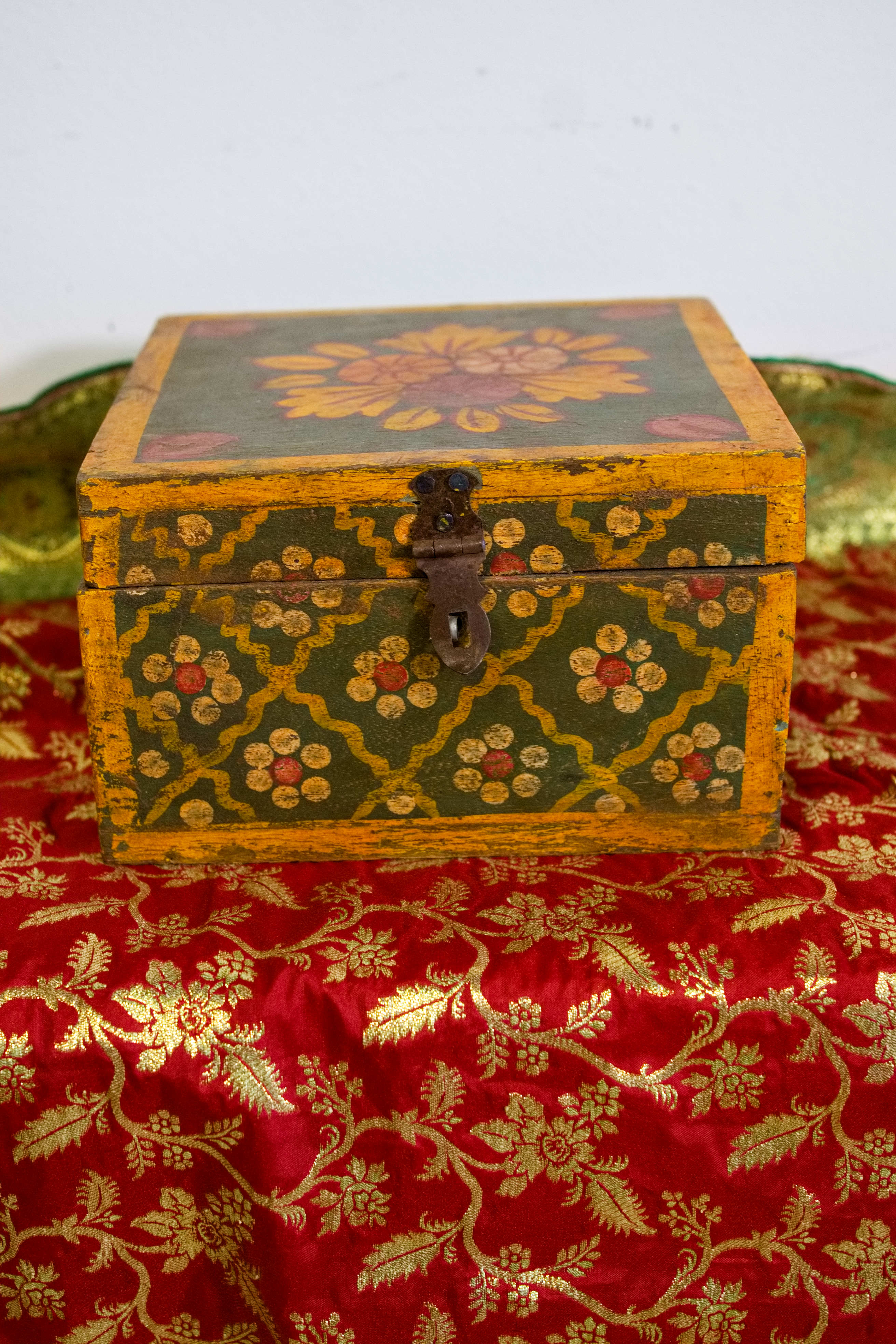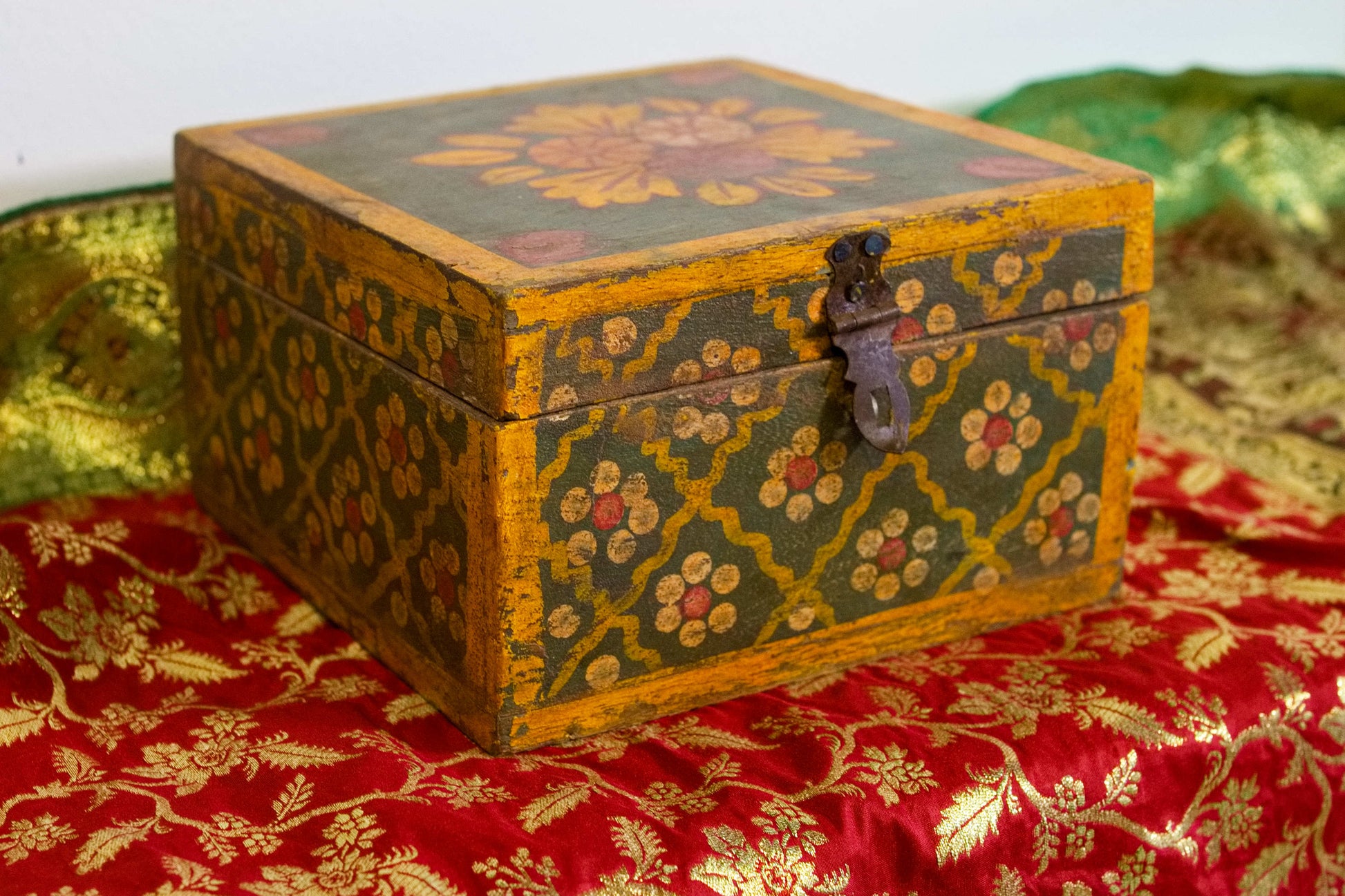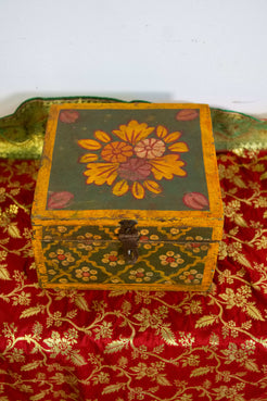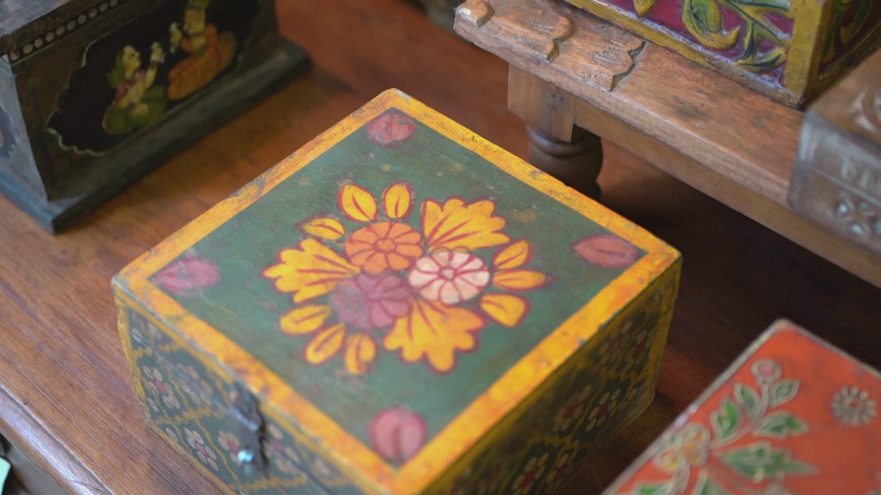scatola, box indiano in legno di teak dipinto