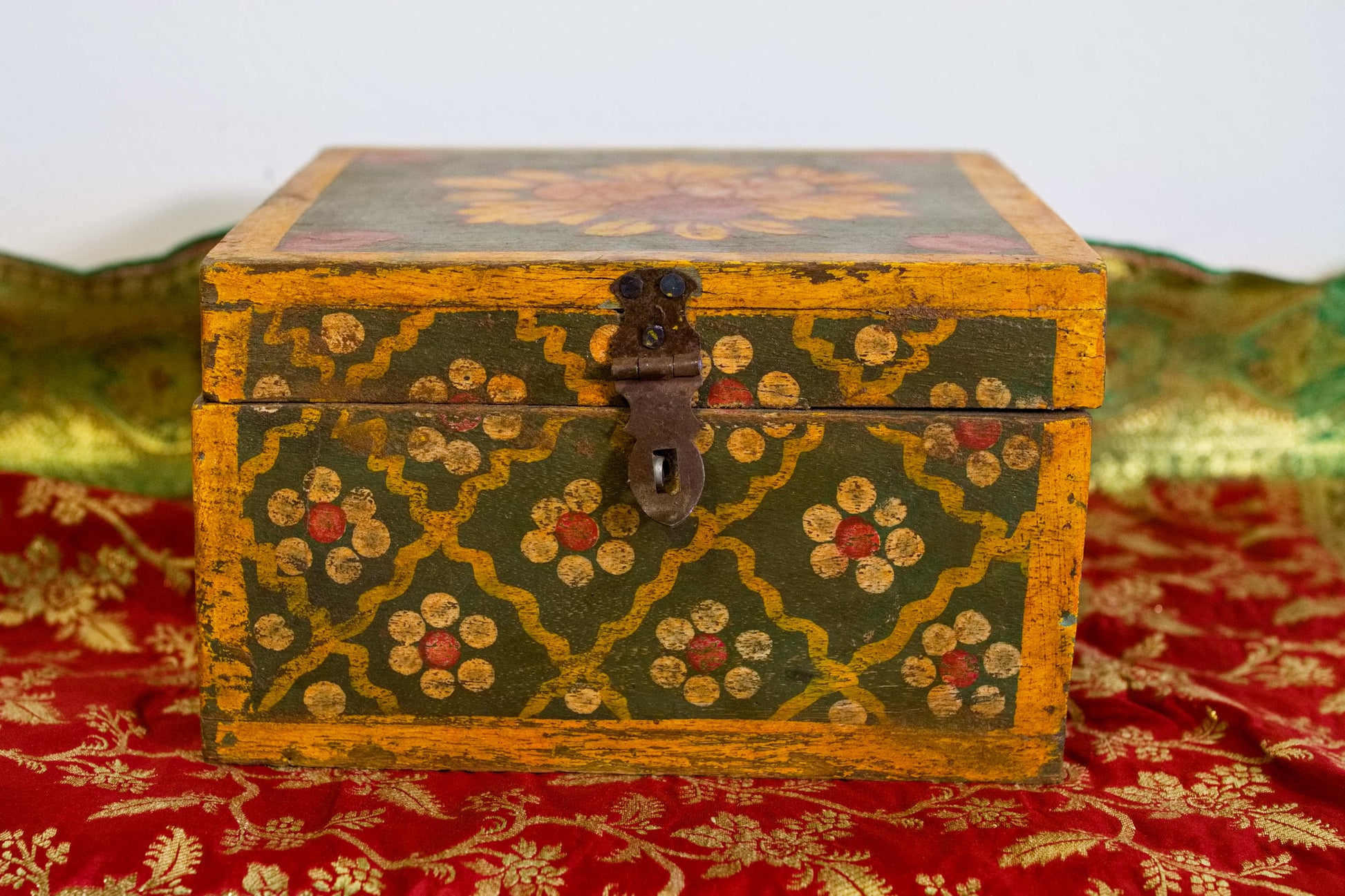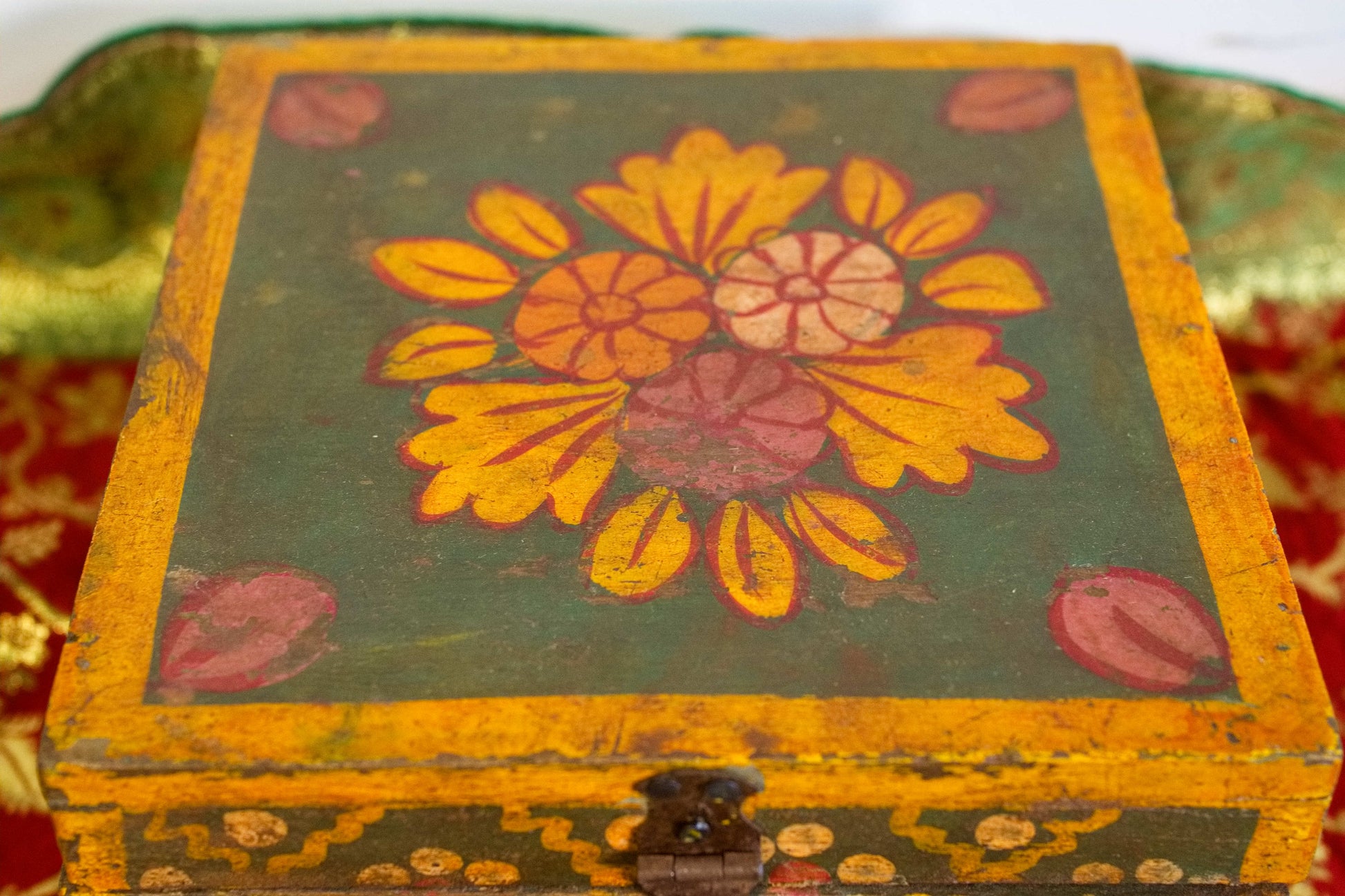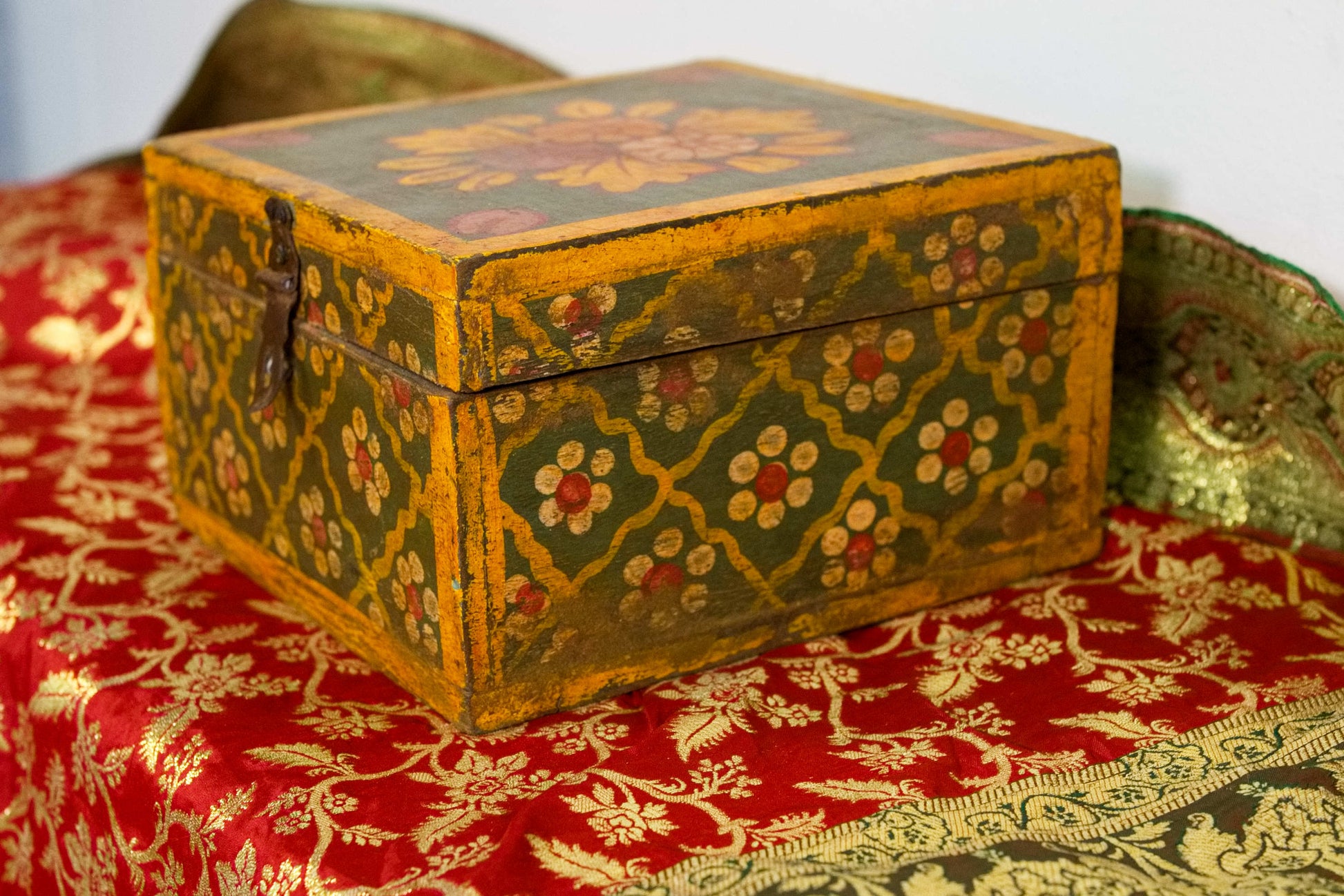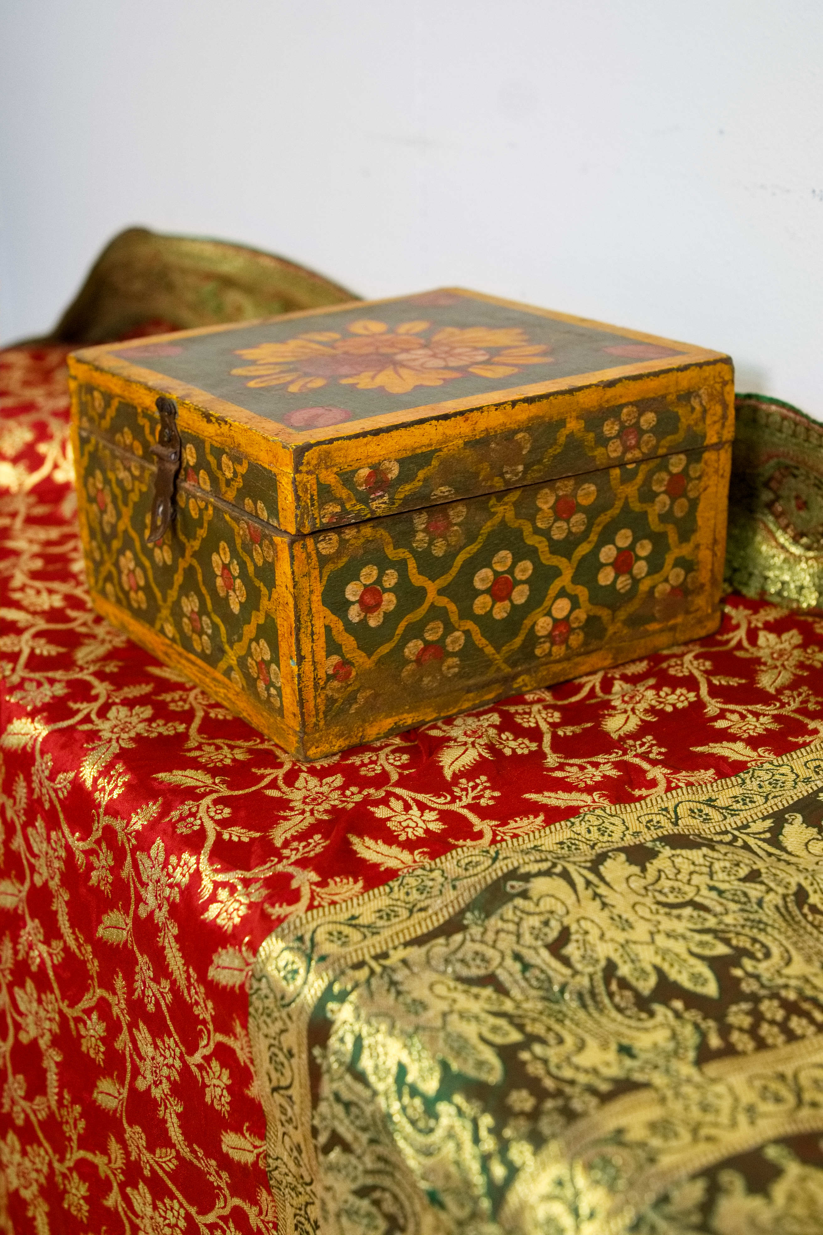 scatola, box indiano in legno di teak dipinto
