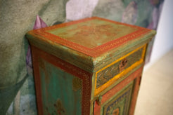 mobile indiano 1 anta 1 cassettocostruito in legno di teak dipinto ed inciso mobile decorato a rilievo in pasta di ge...
