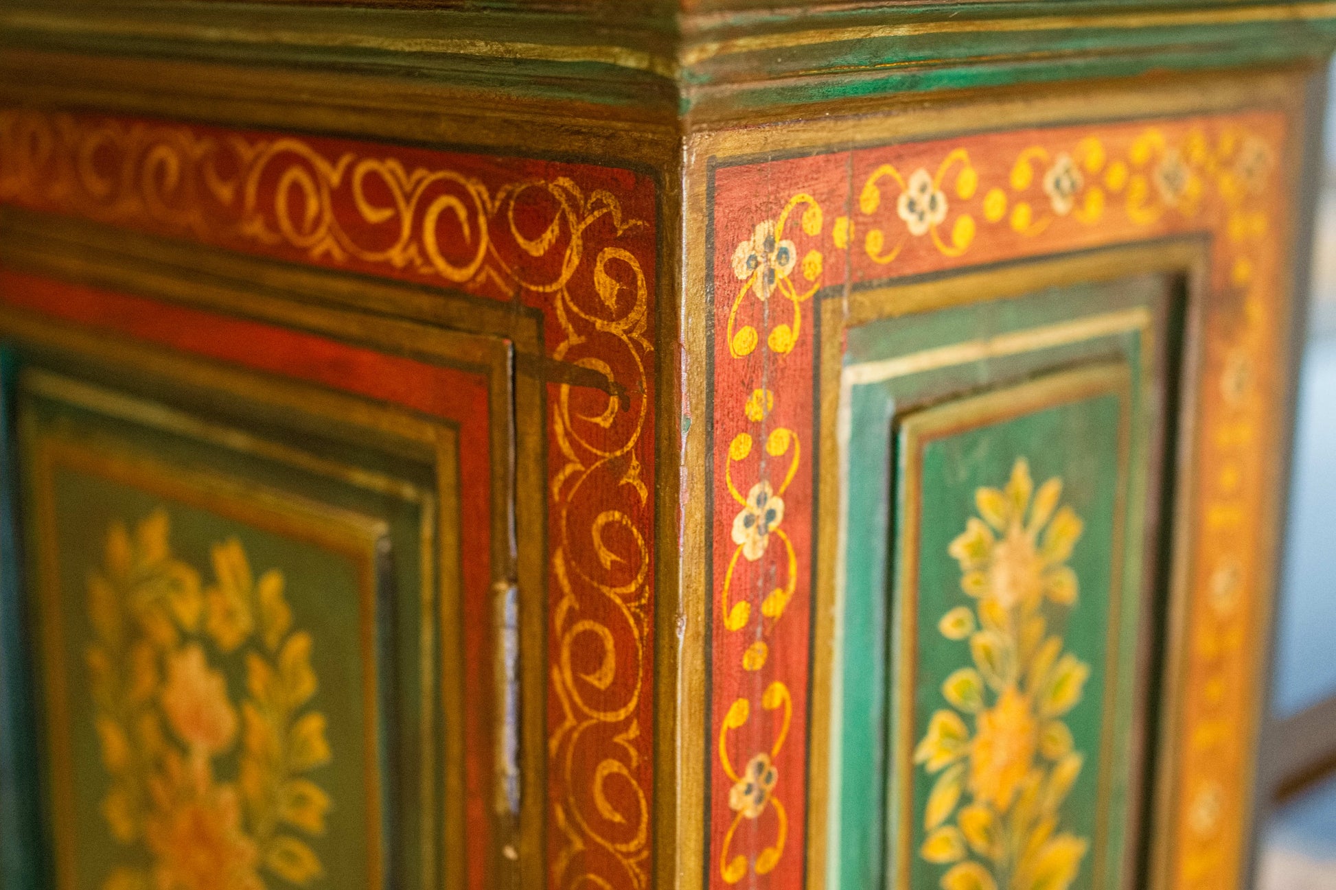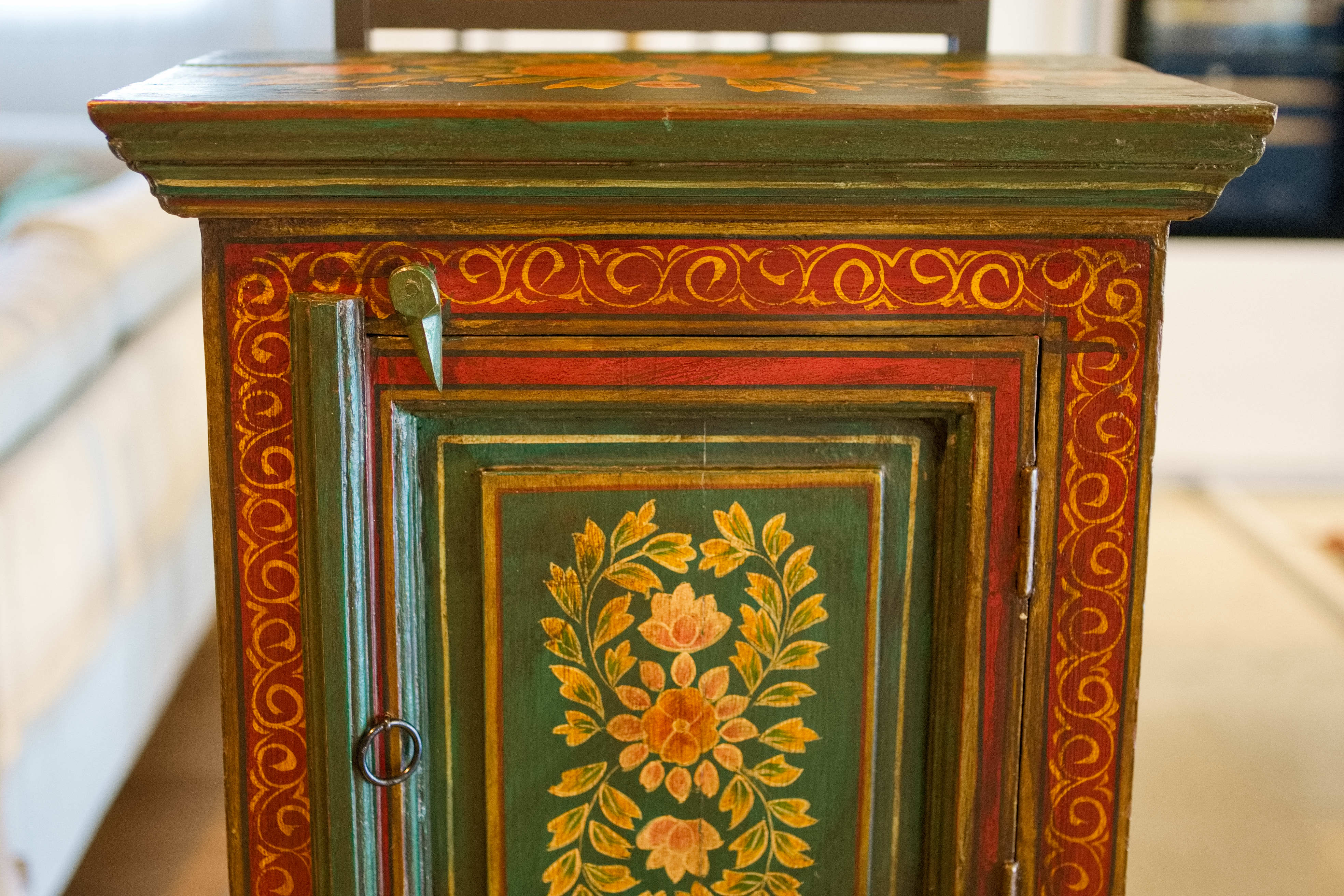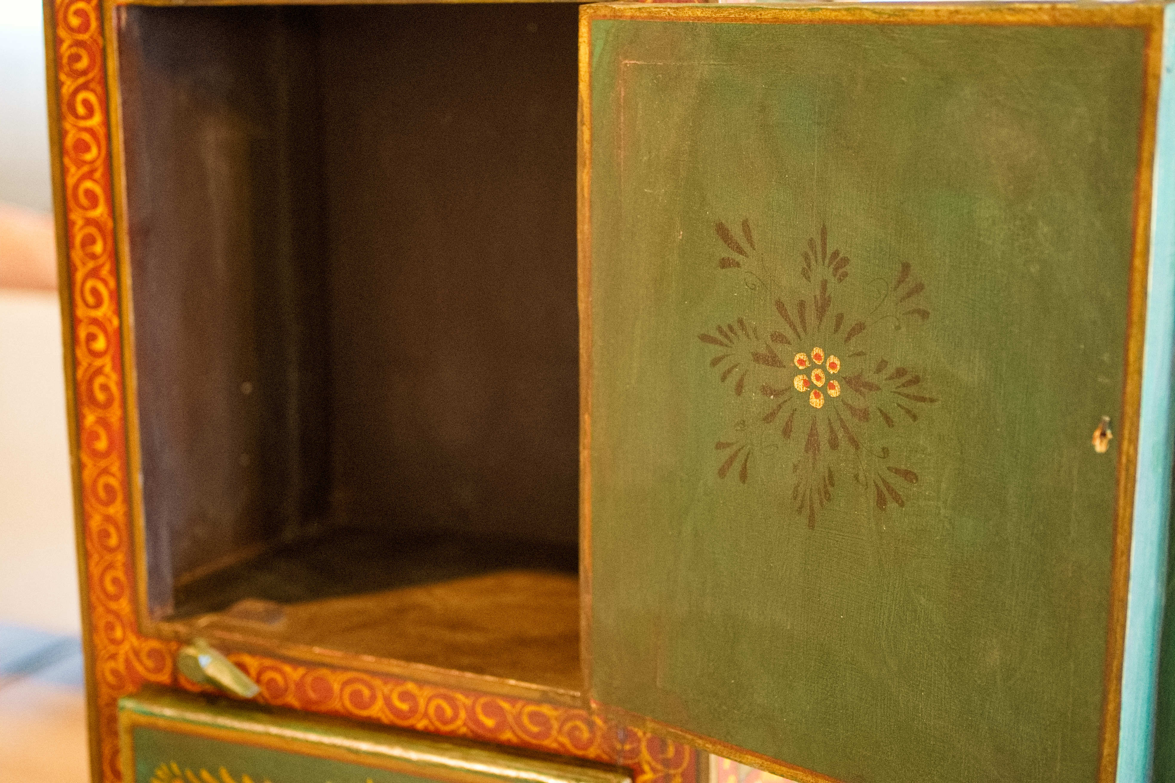 mobile a 2 ante e 1 cassetto finemente dipinto in ogni lato