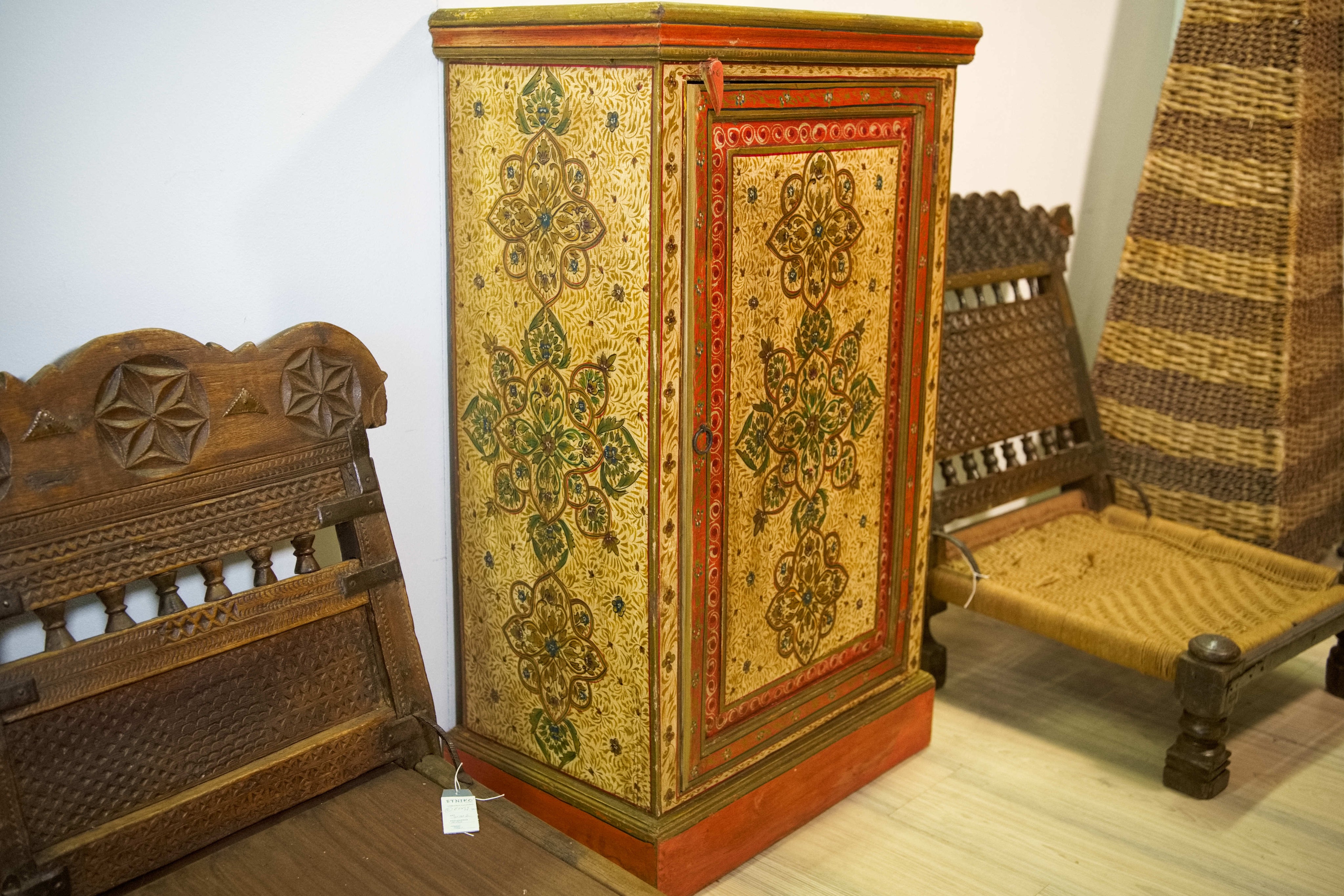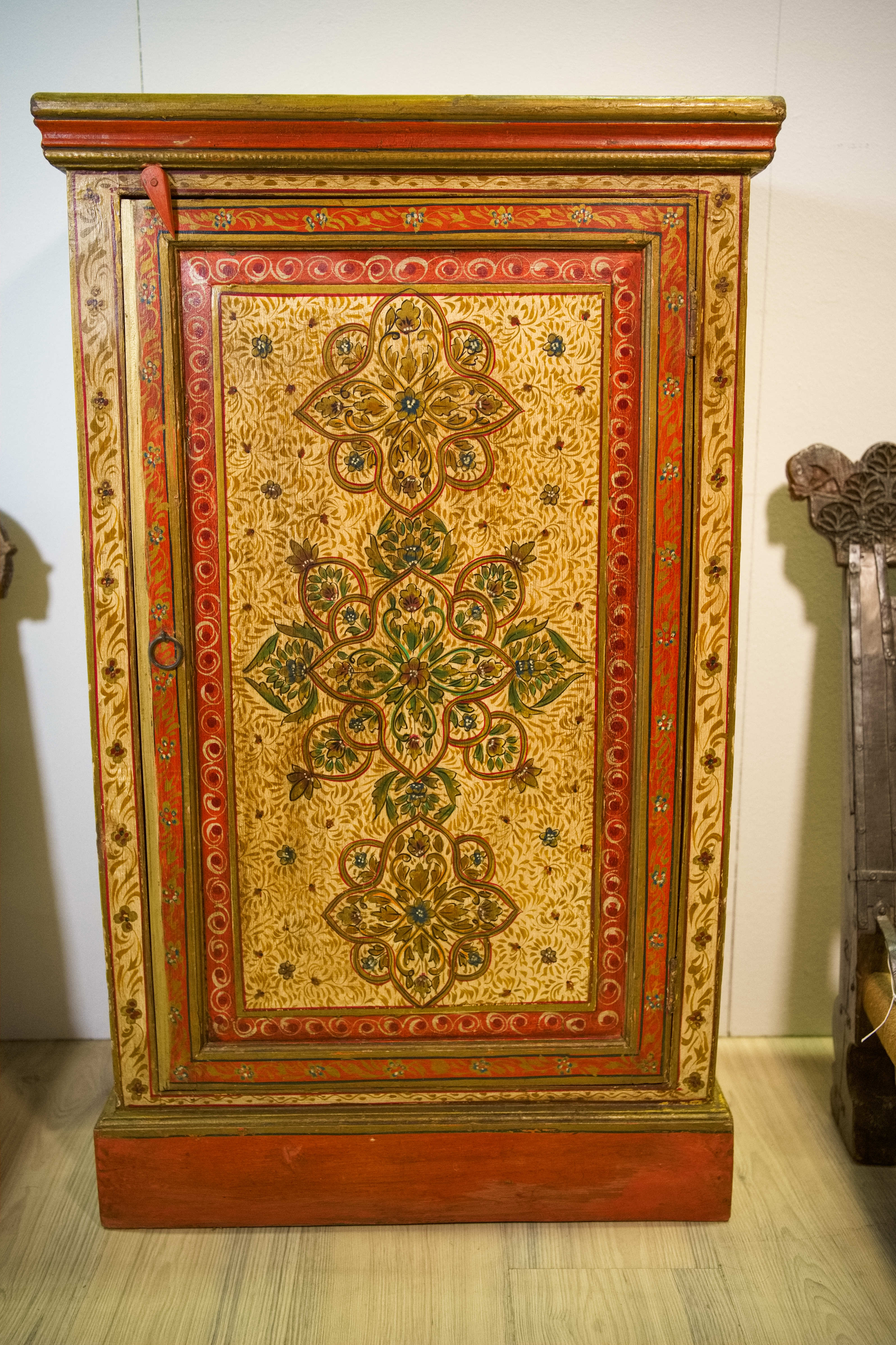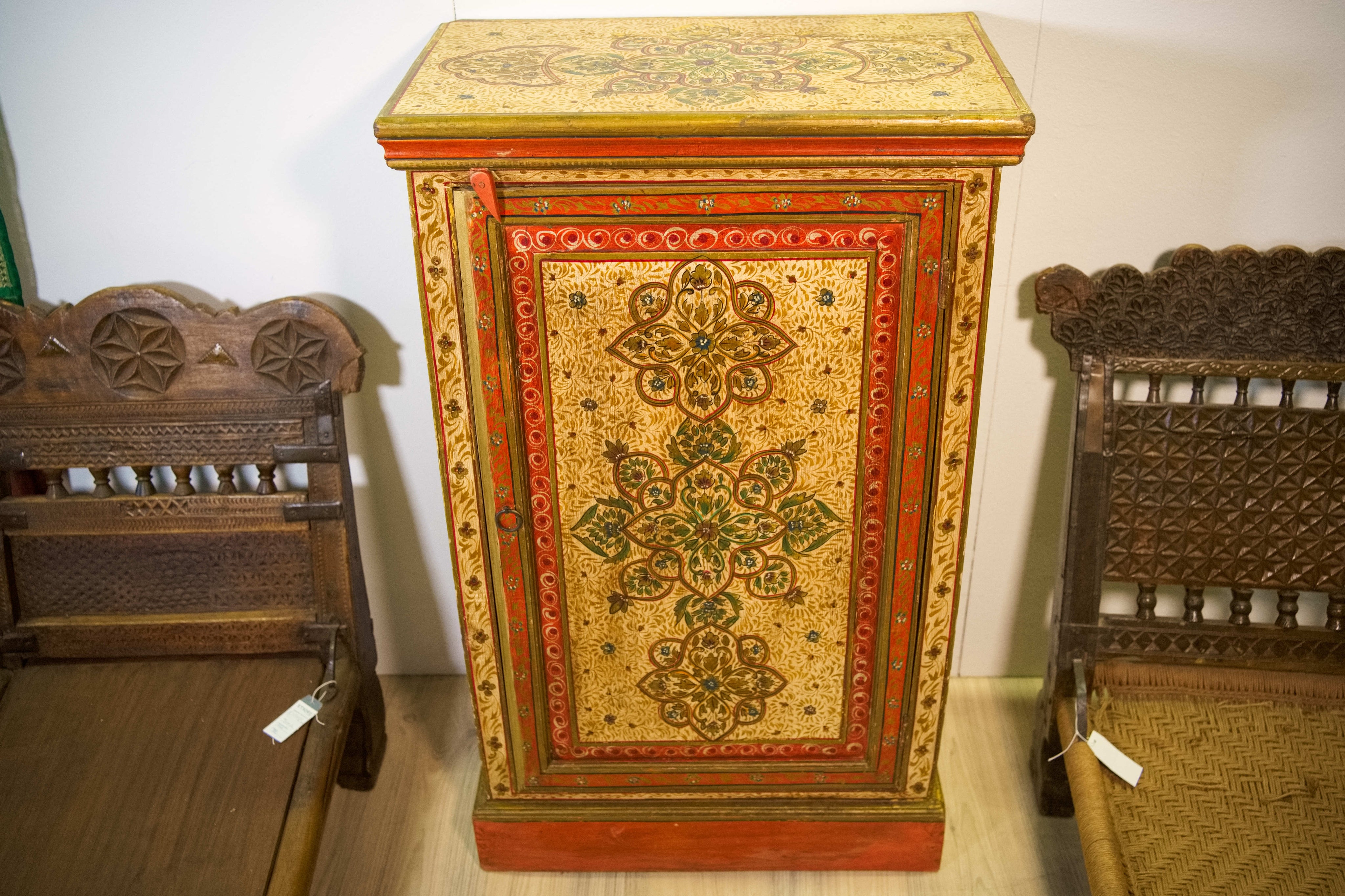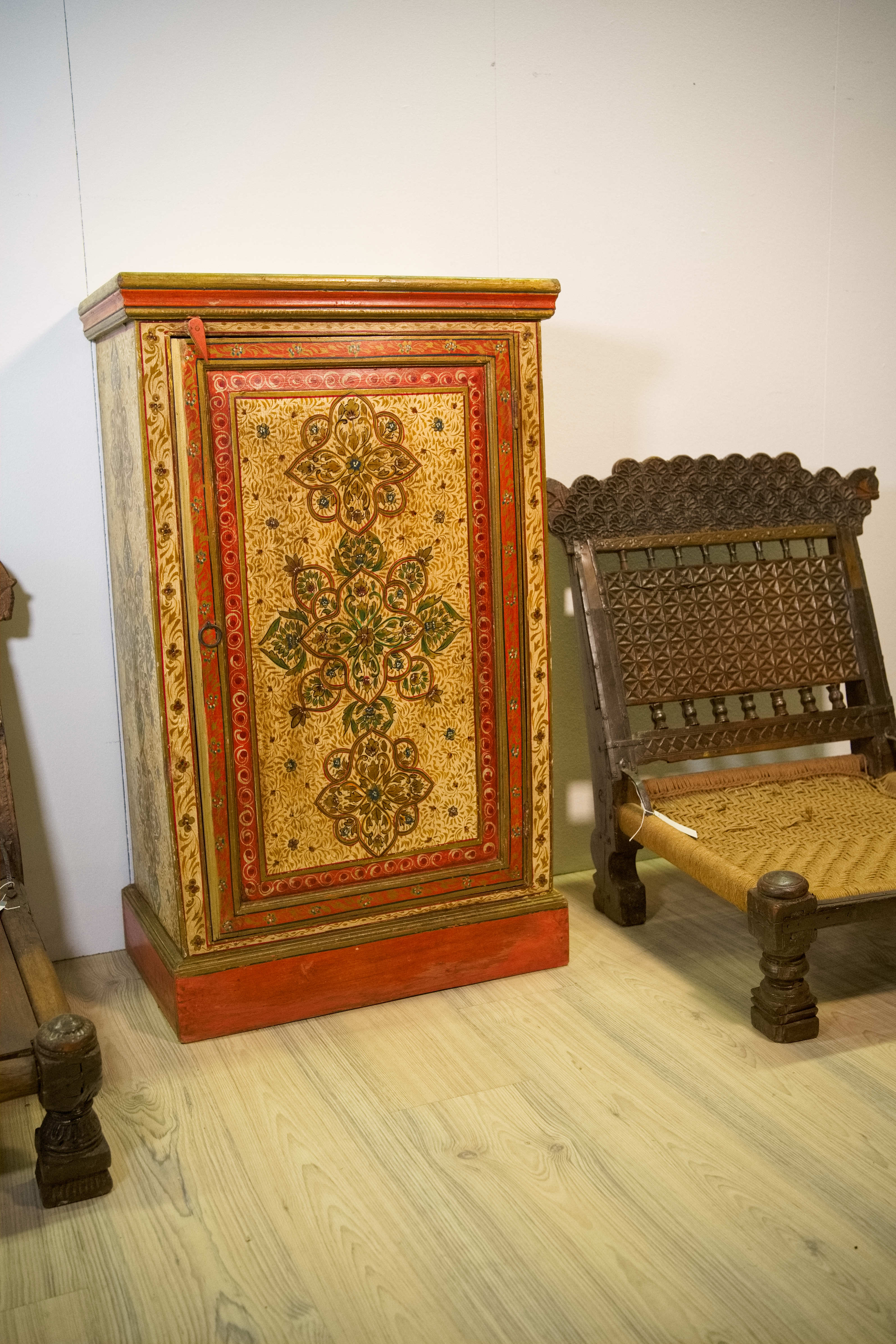 mobile indiano 1 anta costruito in legno di teak dipinto finemente in tutti i lati pezzo unico 61 x 36 h.102 cm