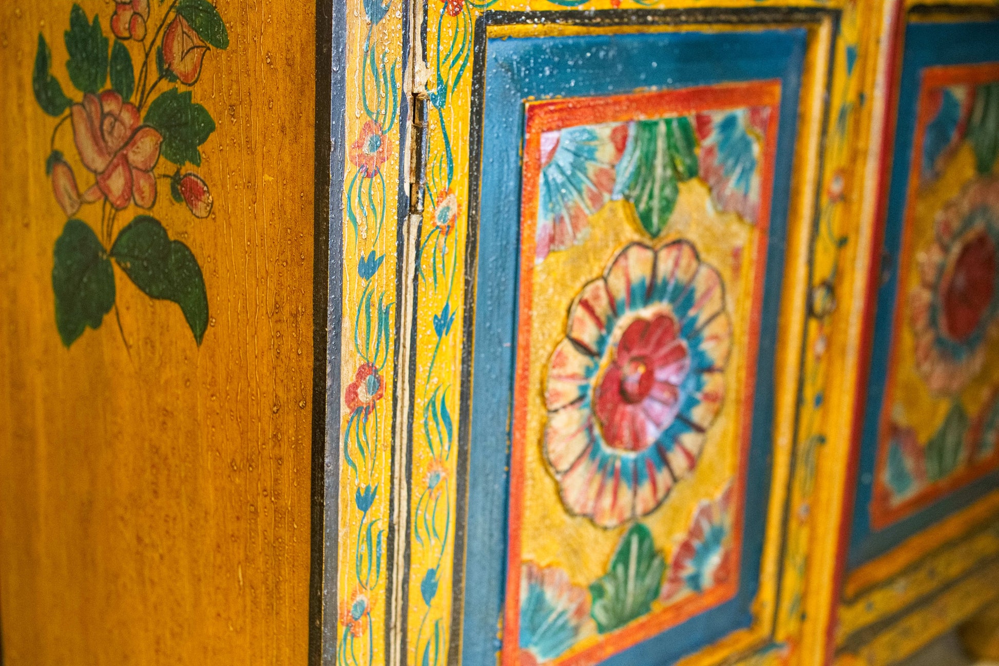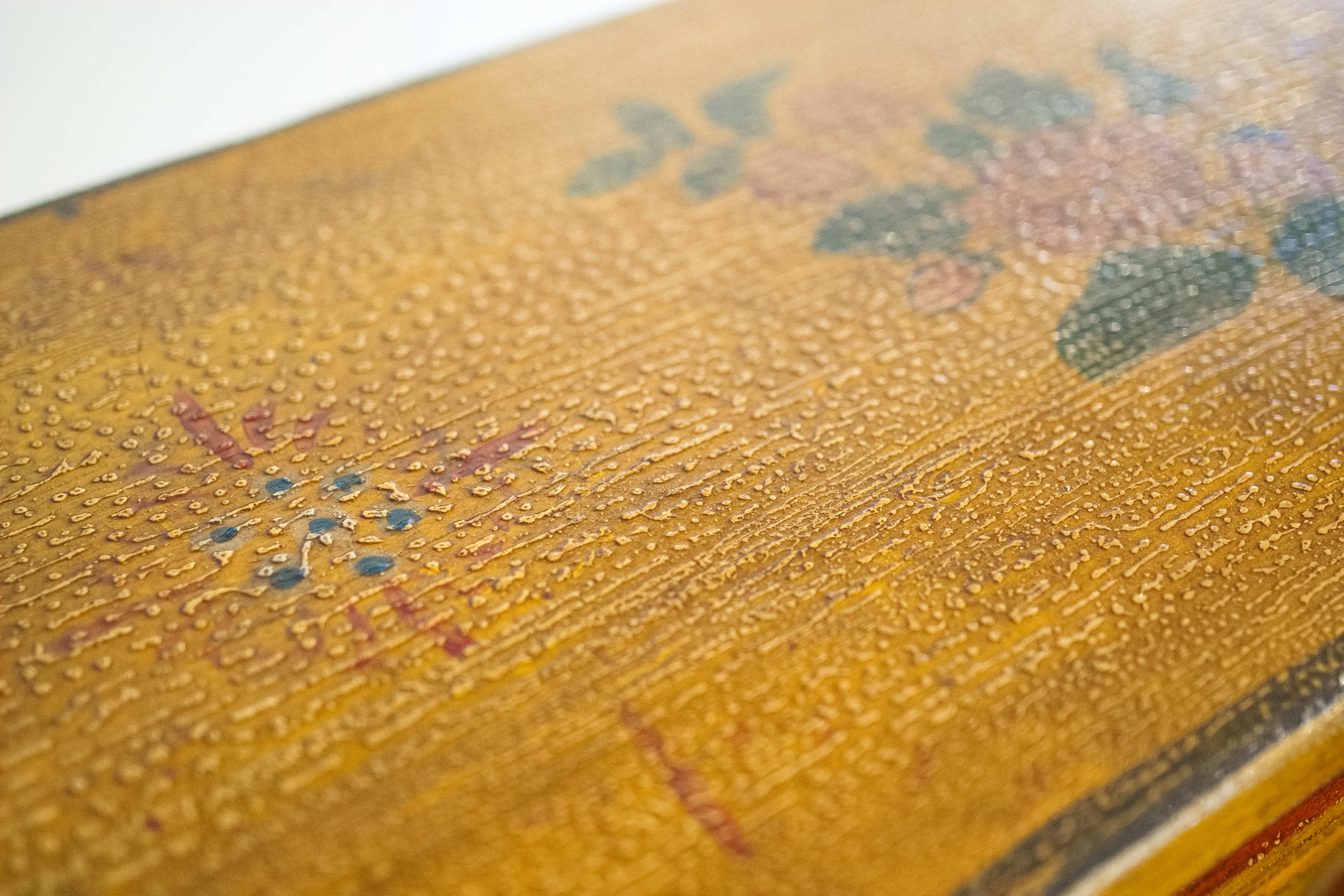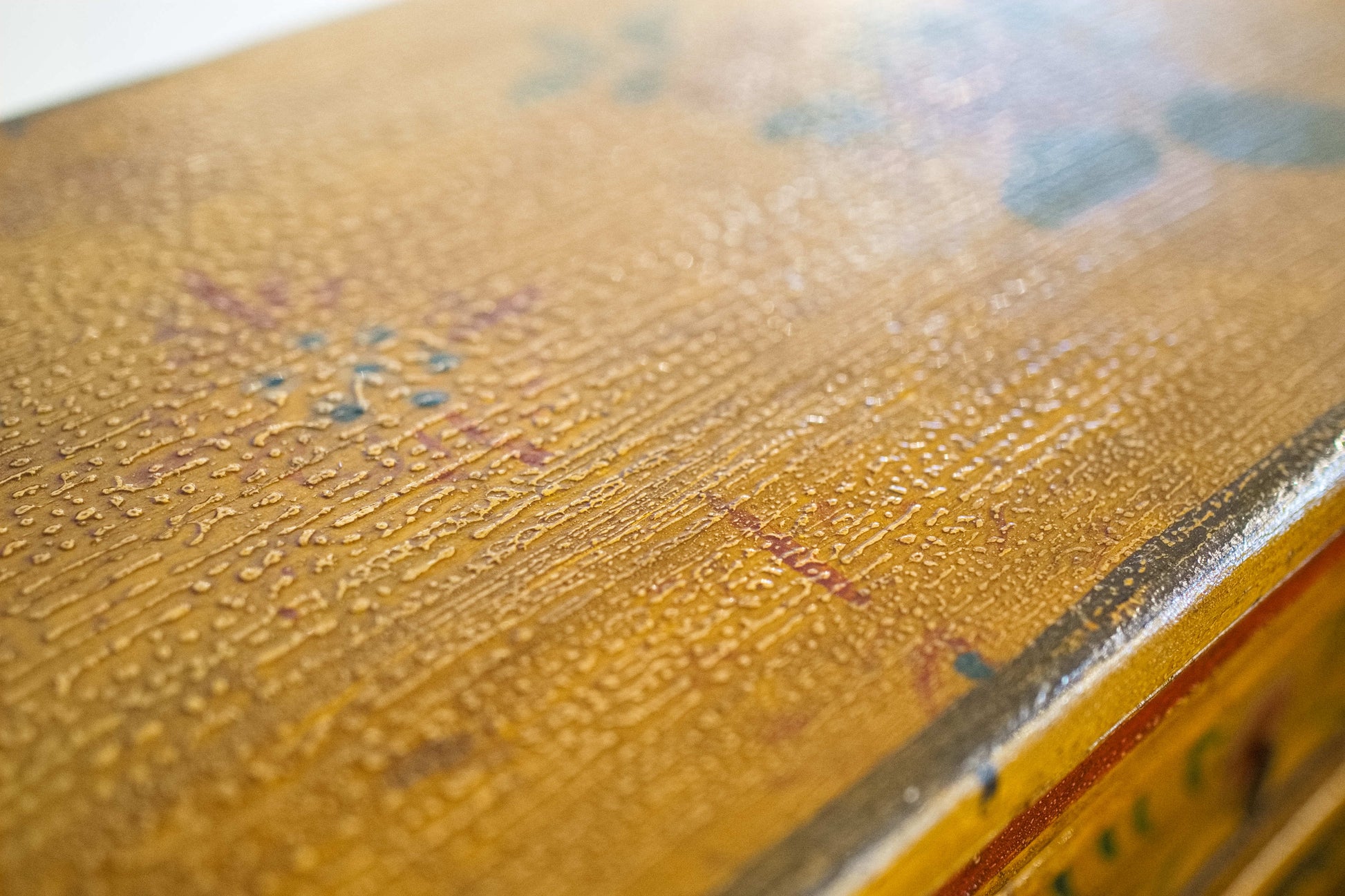 particolare e tipica laccatura a base di gesso per creare l'effetto rilievo .