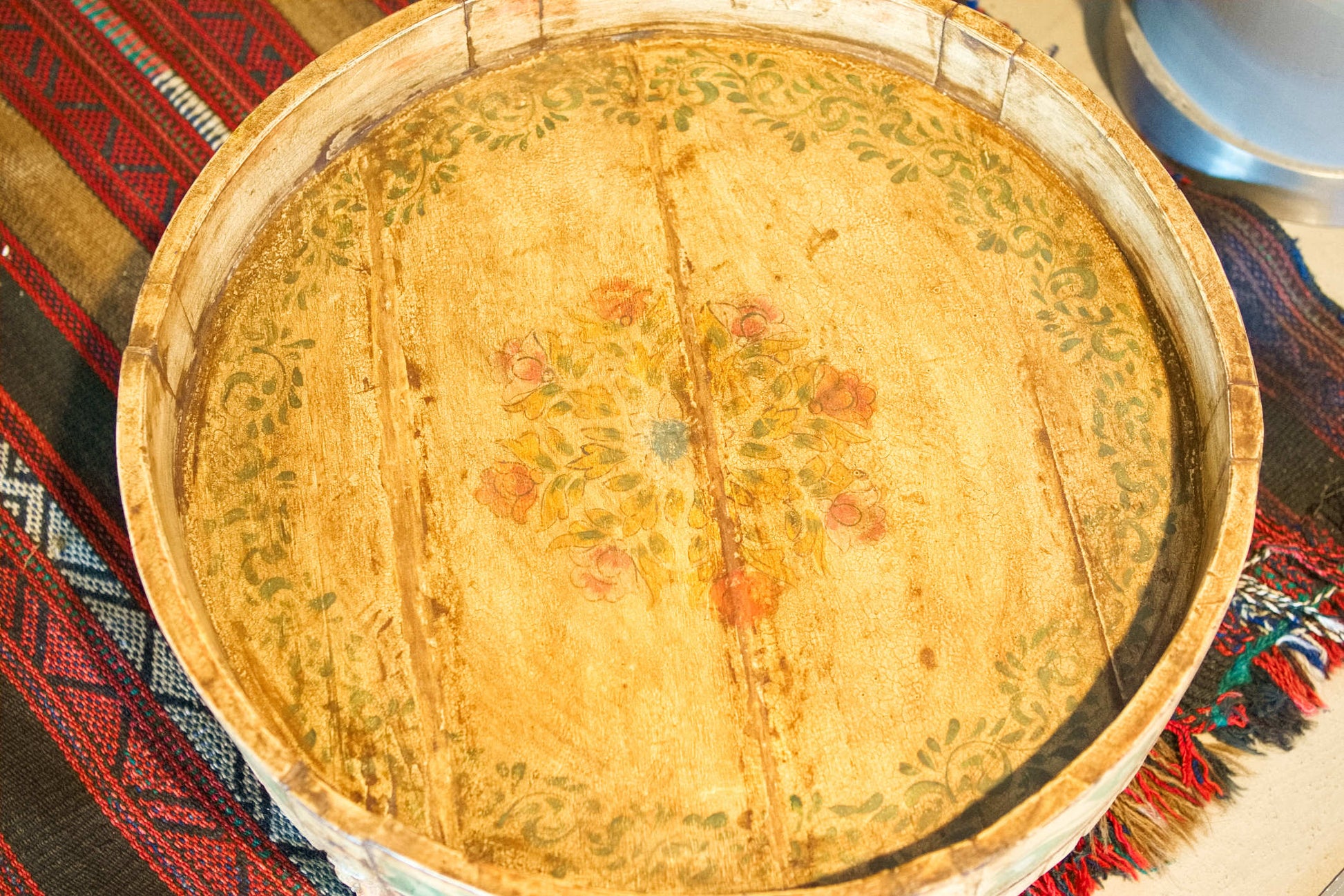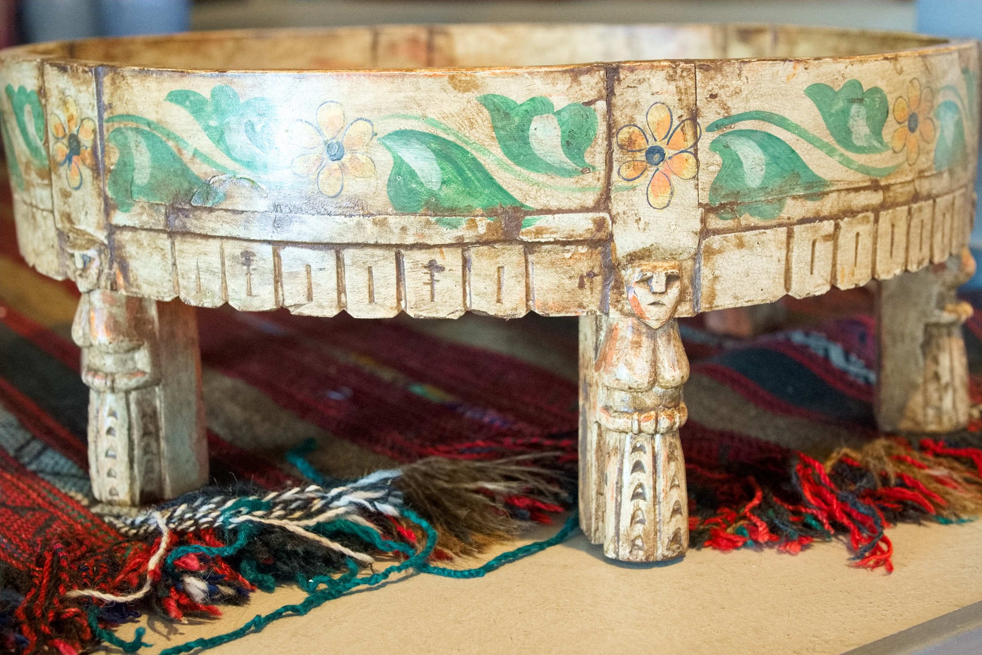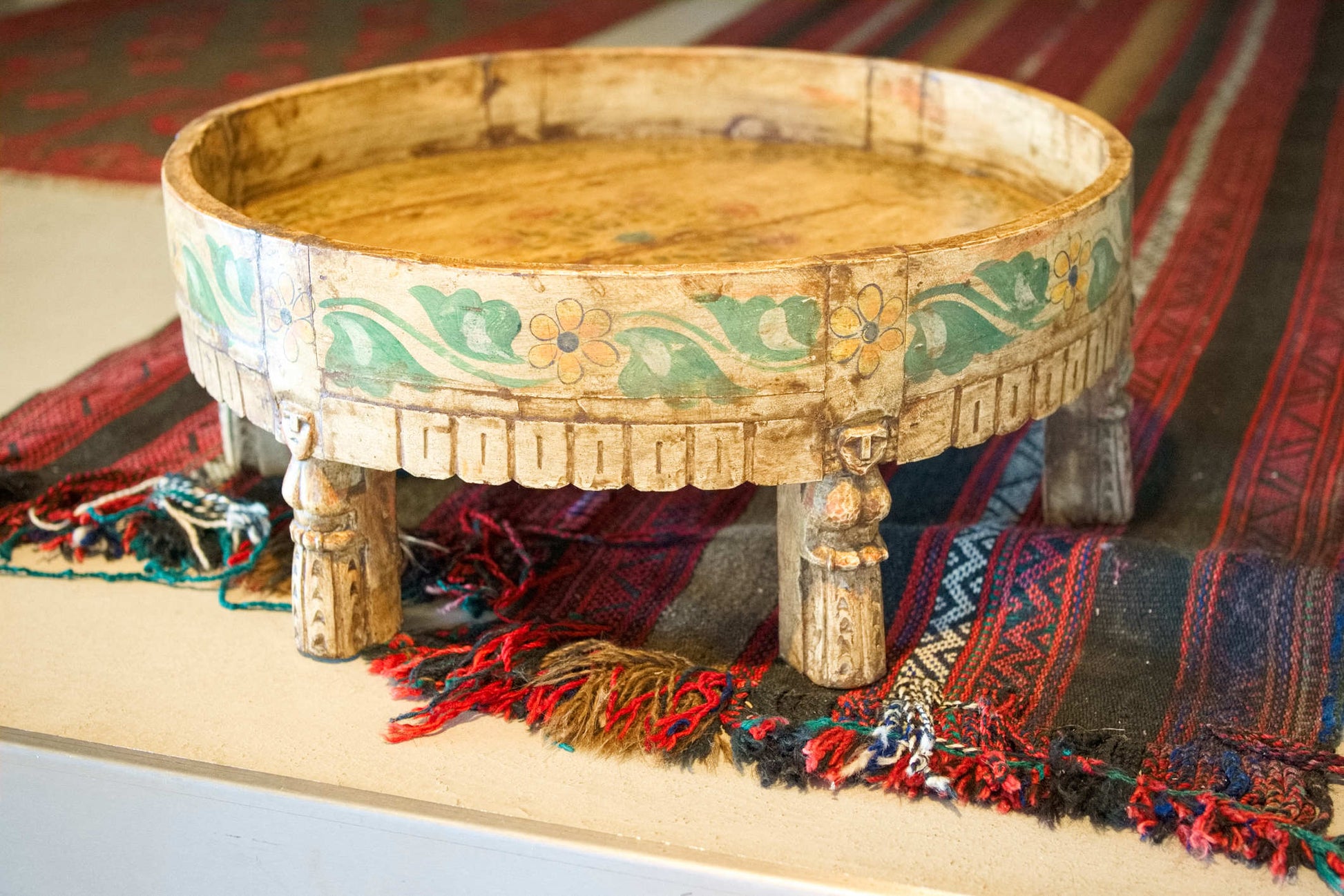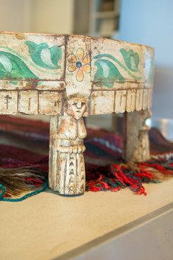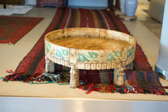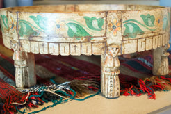 tavolino indiano in legno di teak, inciso e dipinto.