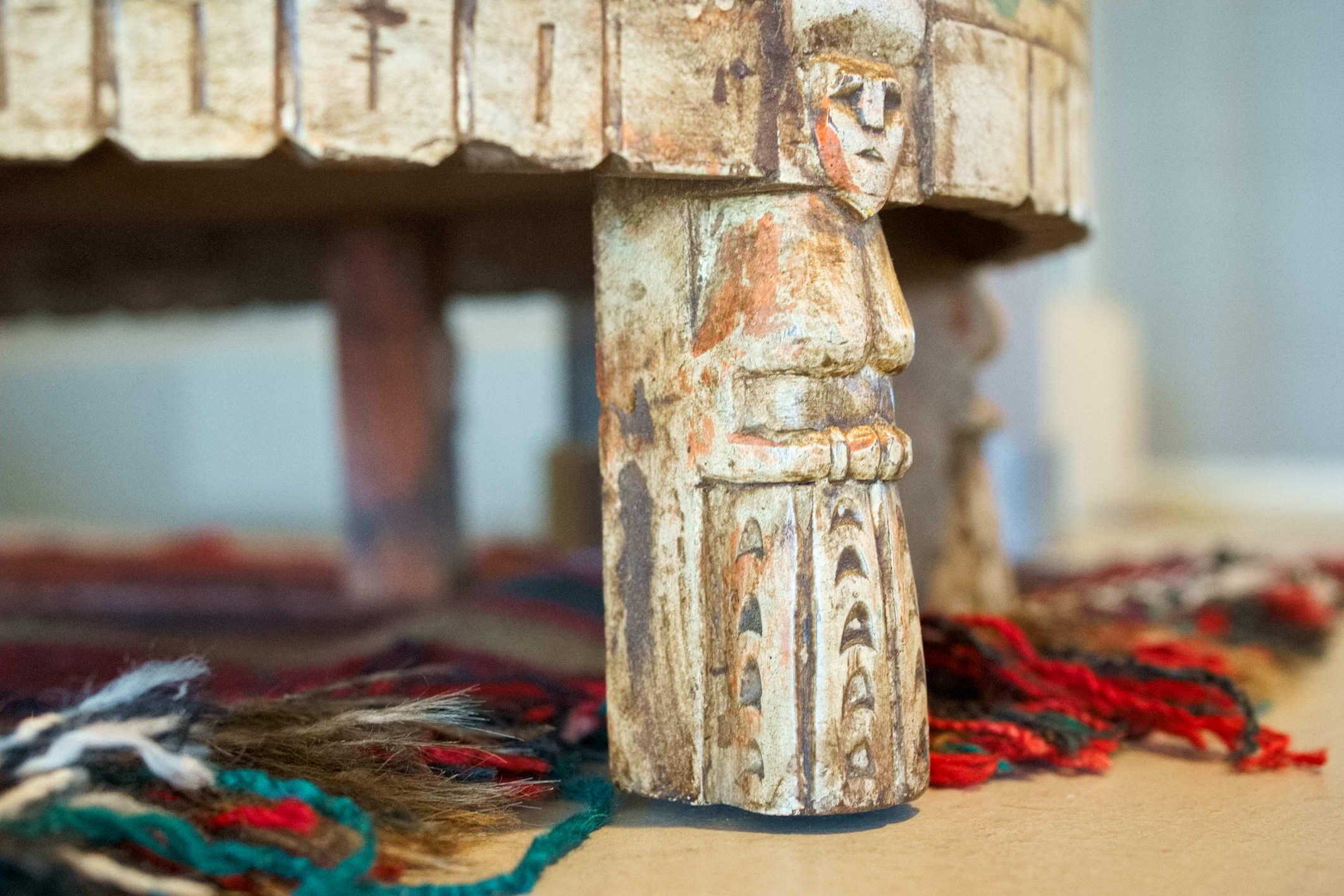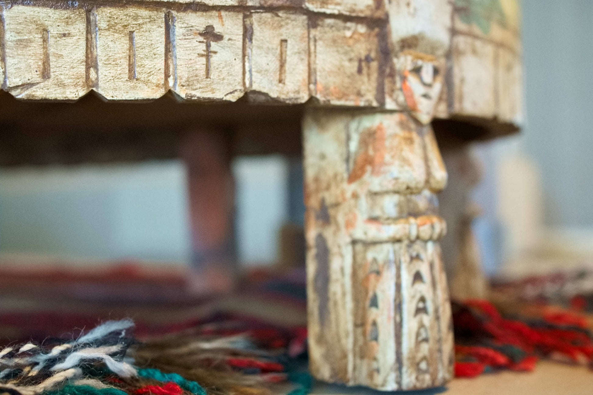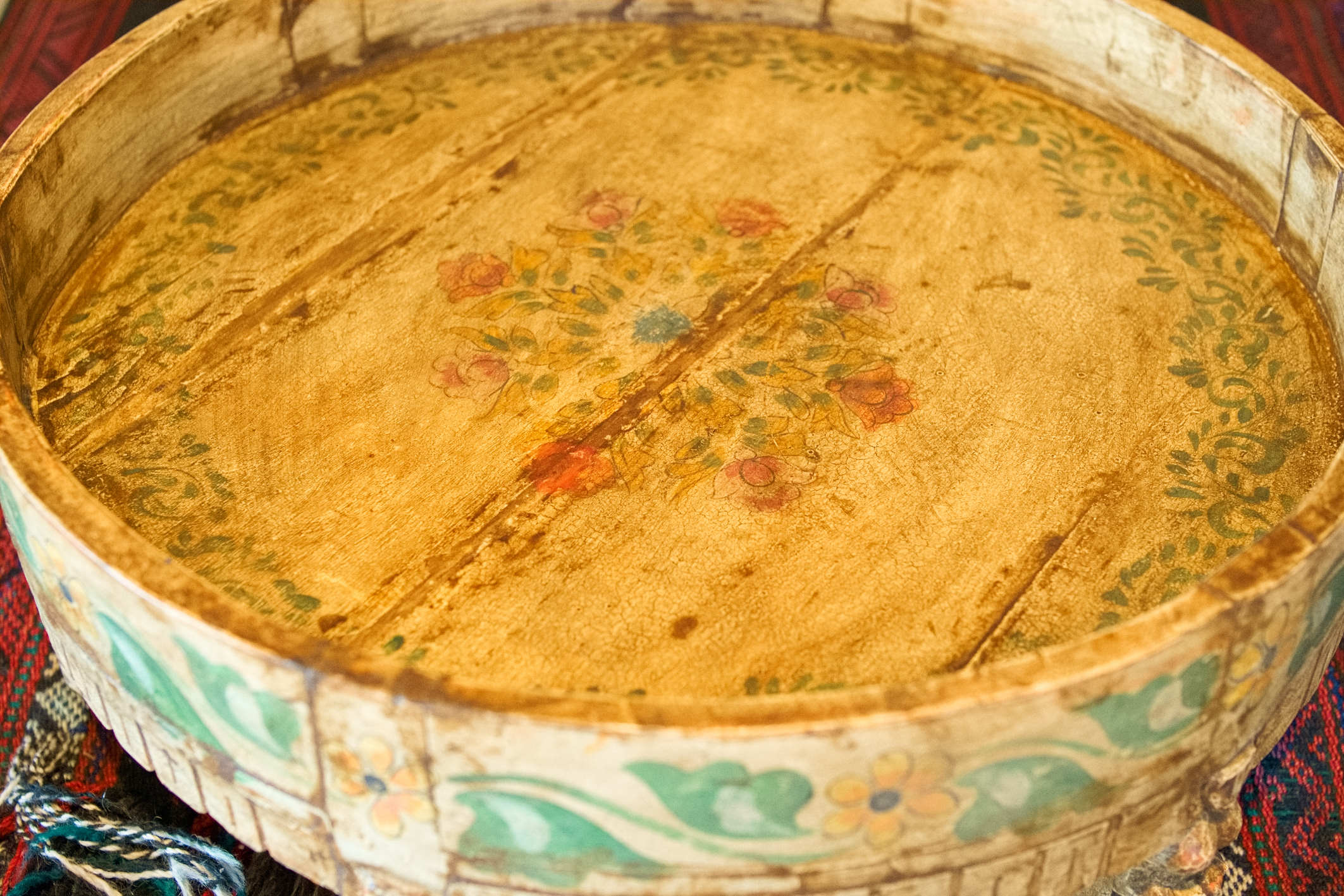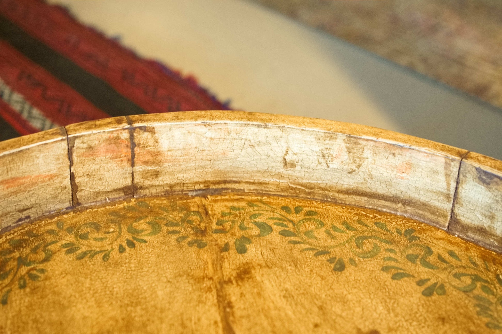 tavolino indiano in legno di teak, inciso e dipinto.