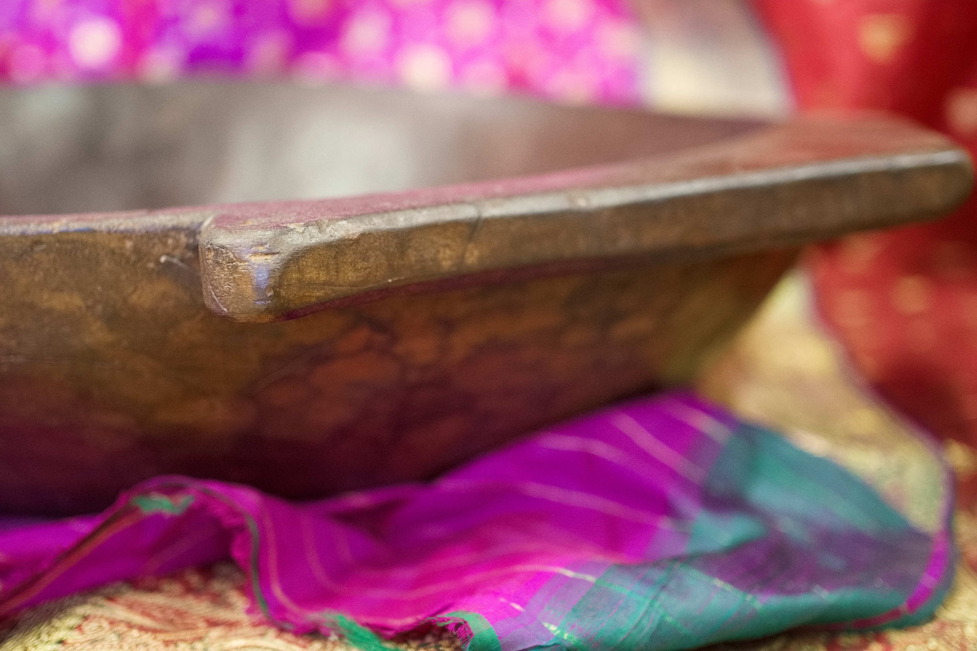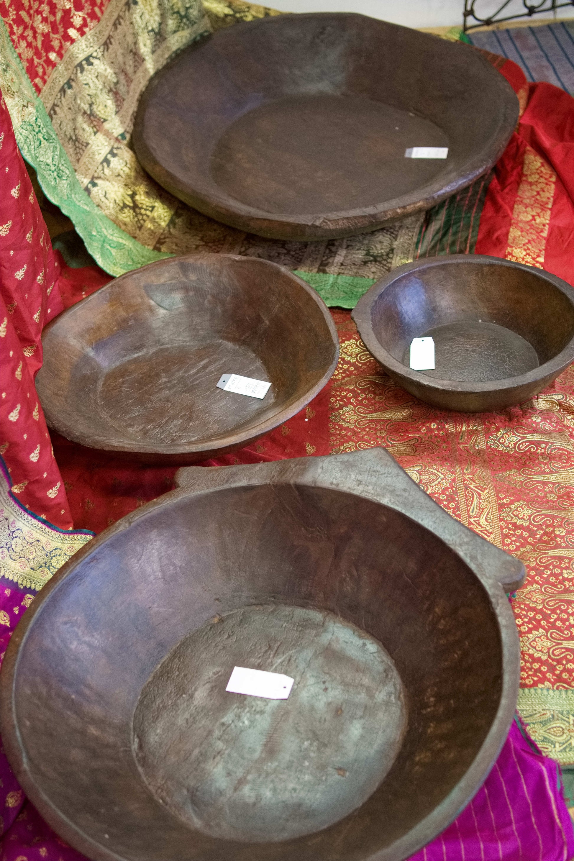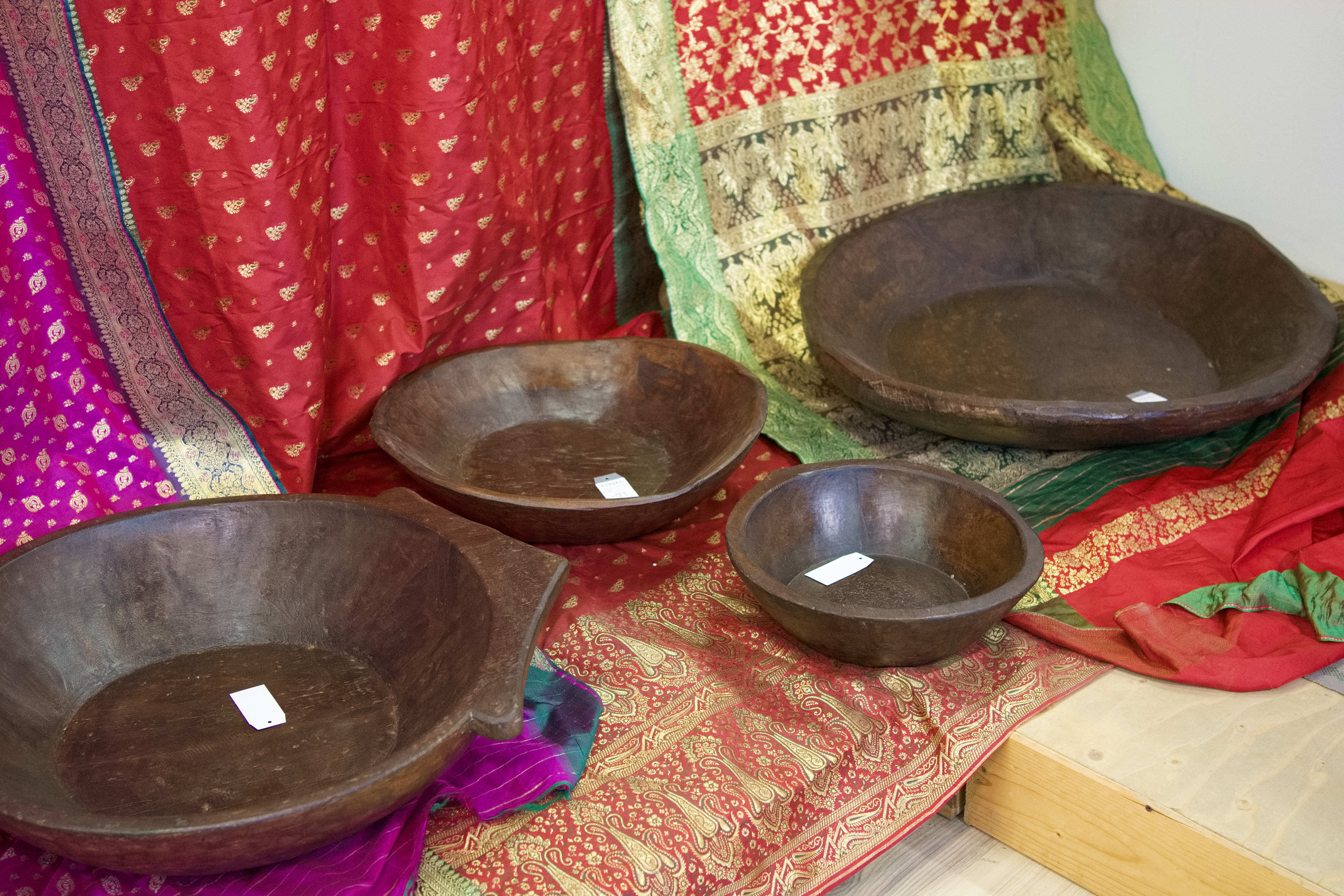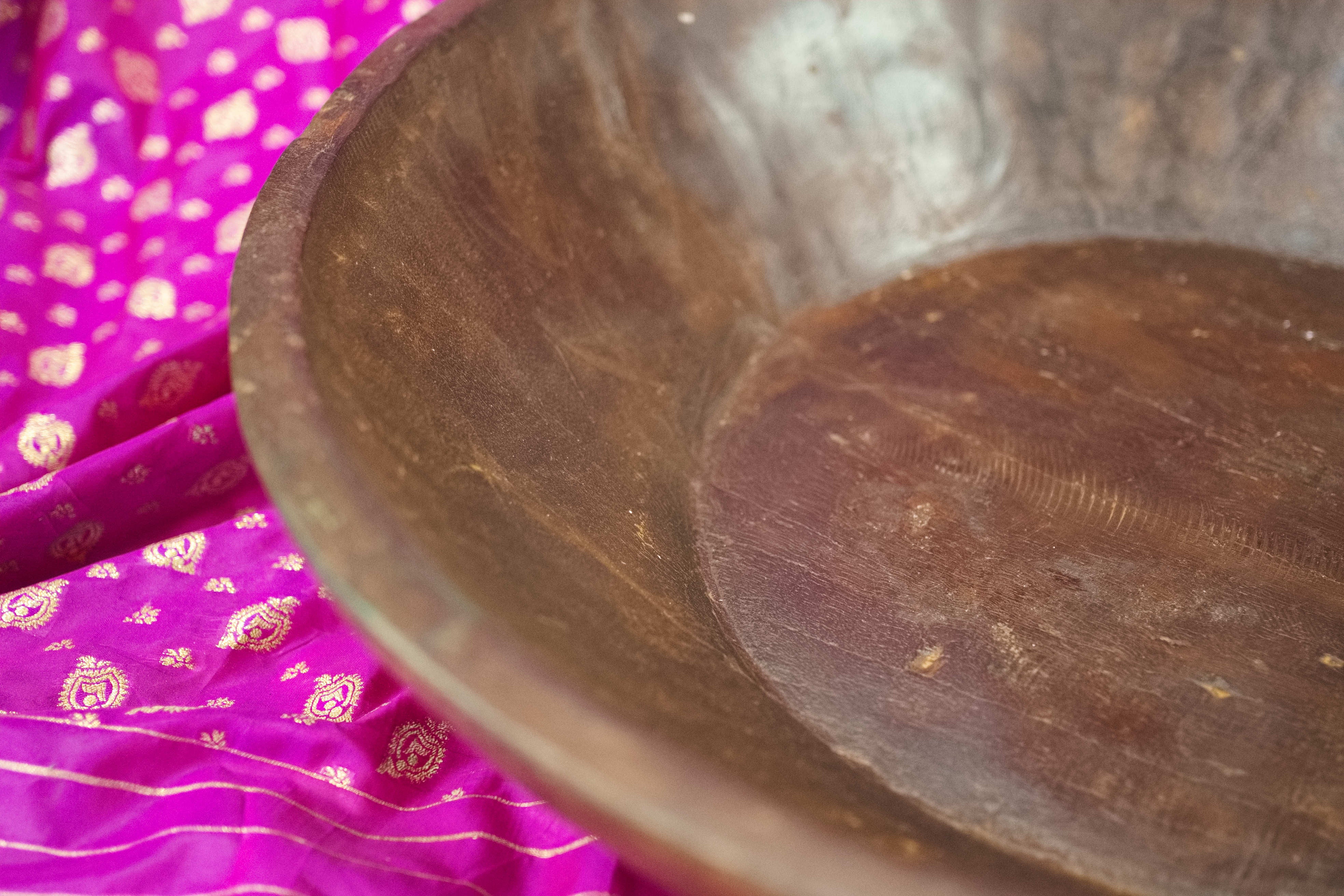 piatto in legno con manico ricavato da un unico tronco di legno. usato in principio come piatto , setaccio per esiccare i cereali tronco unico di teak massello databile inizio / metà 900