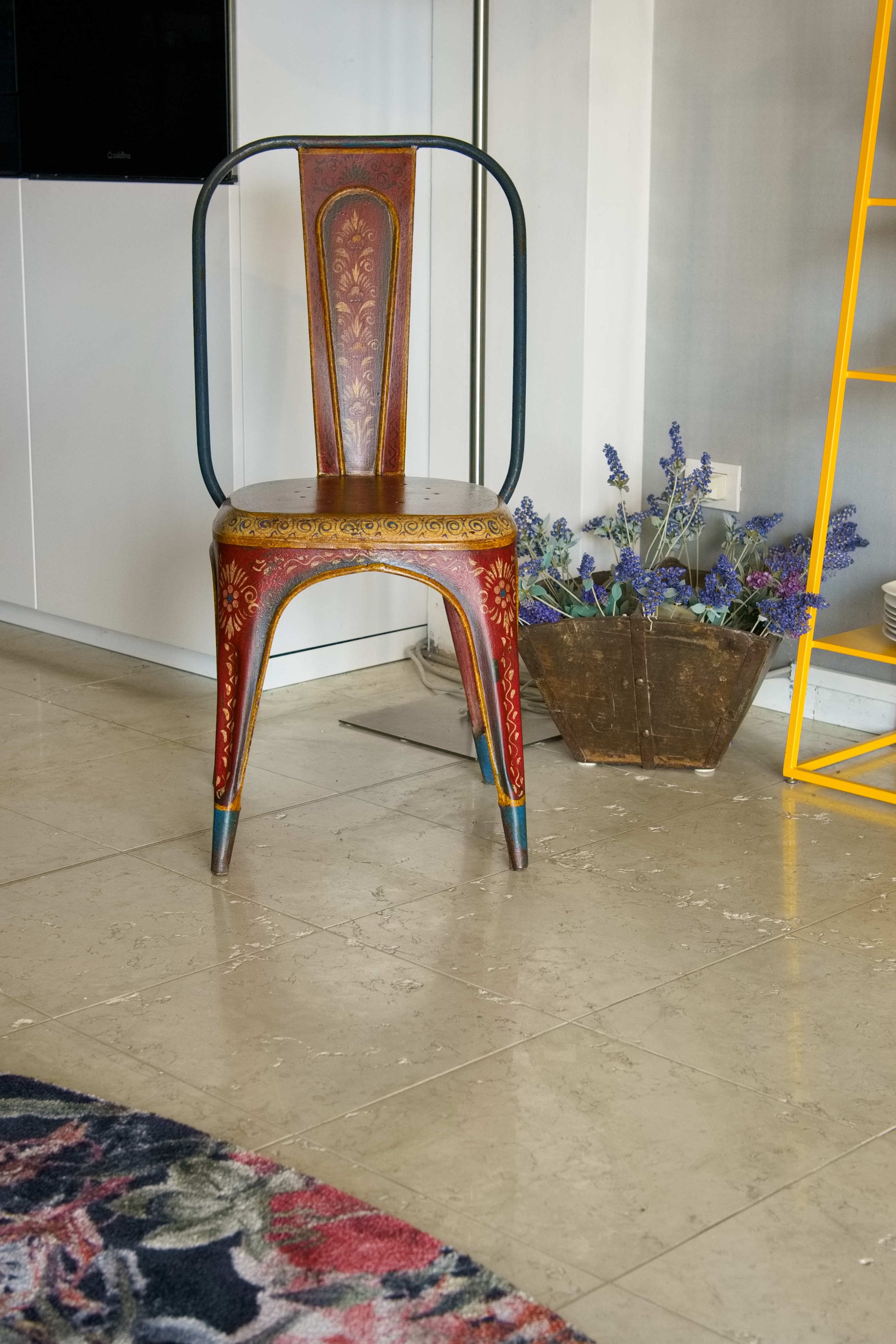 Sedia vintage in ferro, pezzo unico ed artigianale al 100%. Provenienza India.