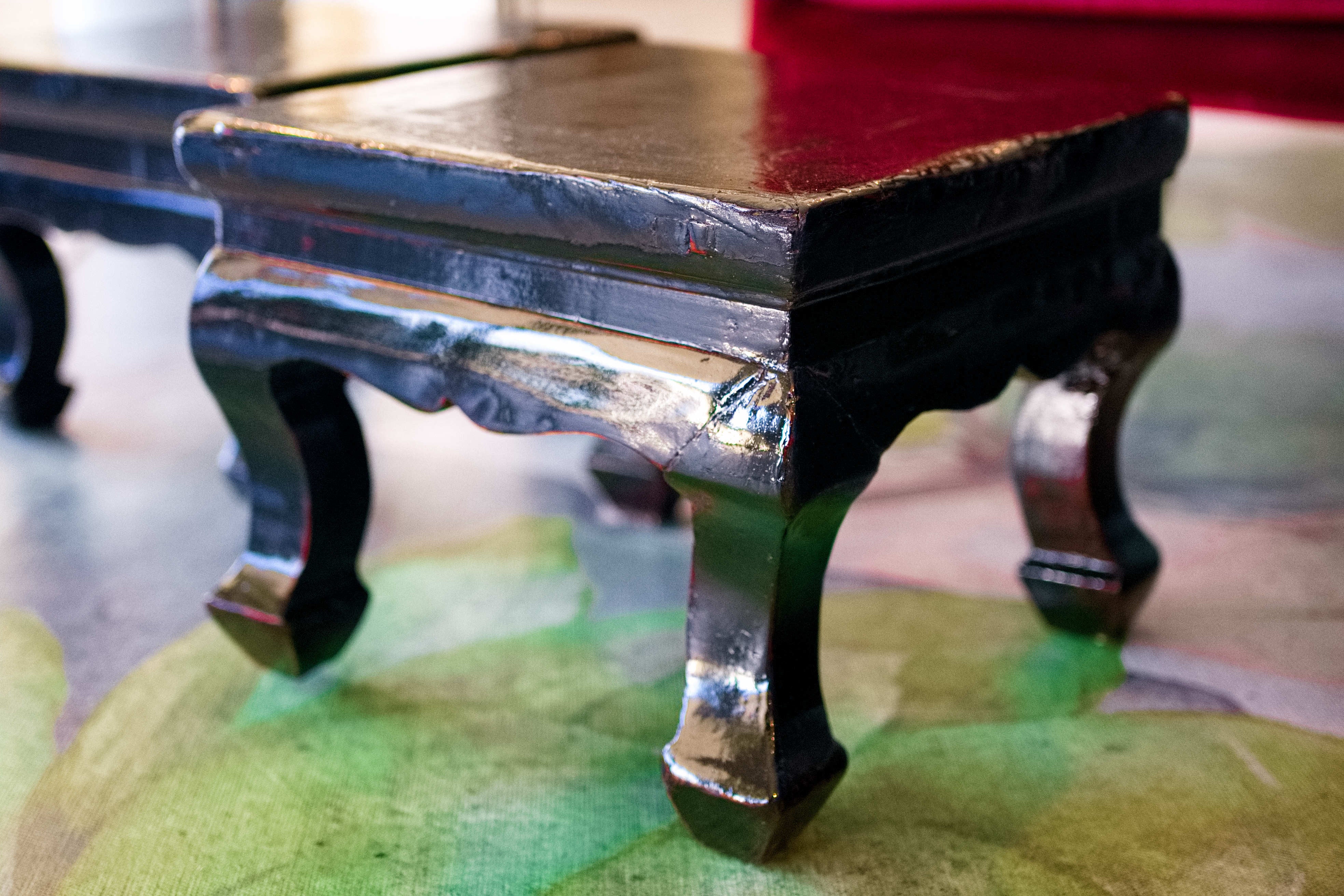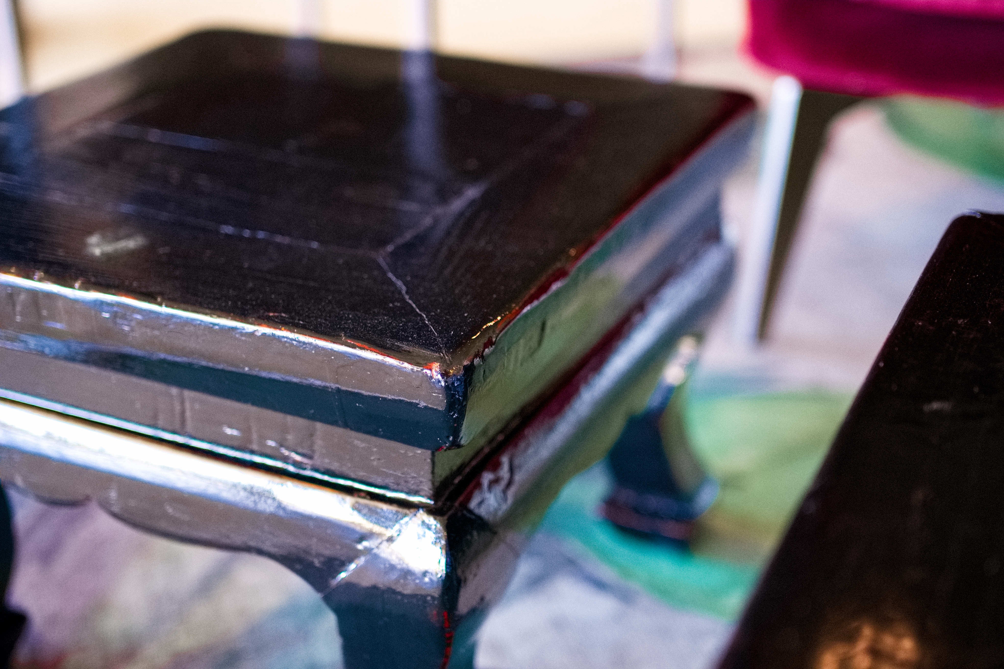 Tavolino Cinese in legno di olmo, databile primi '900. Dimensioni 80x80 h55cm.