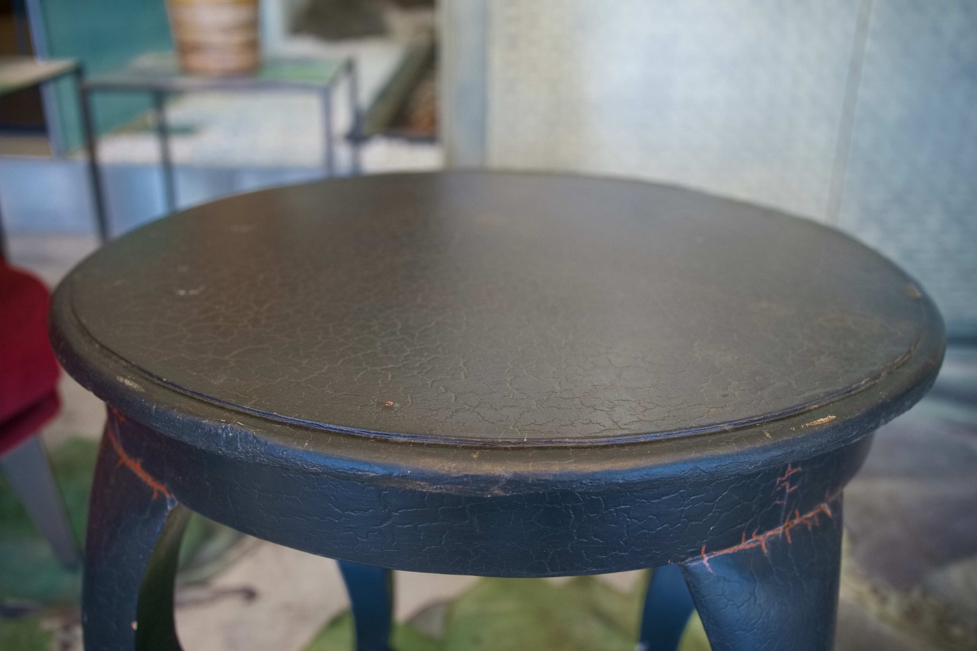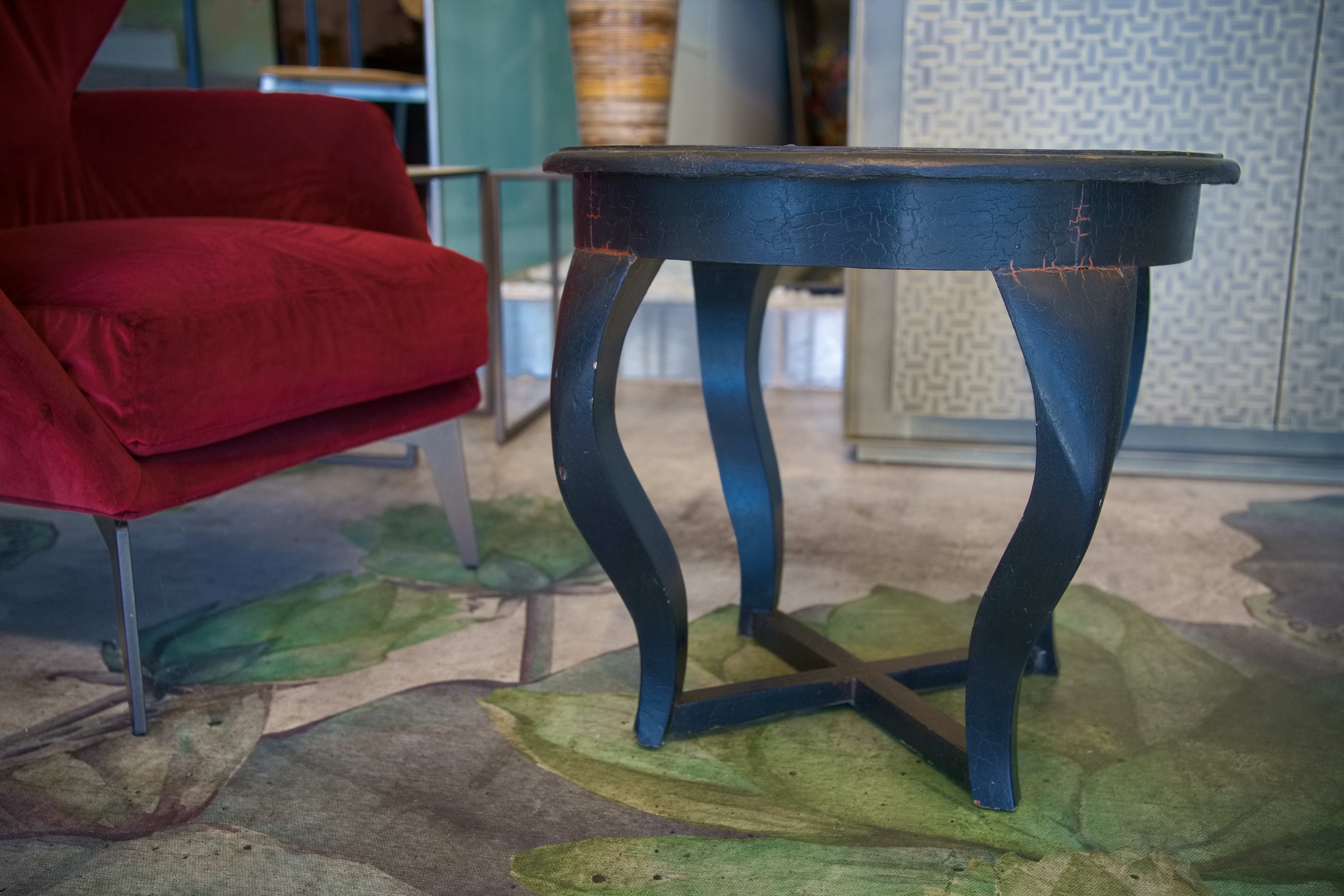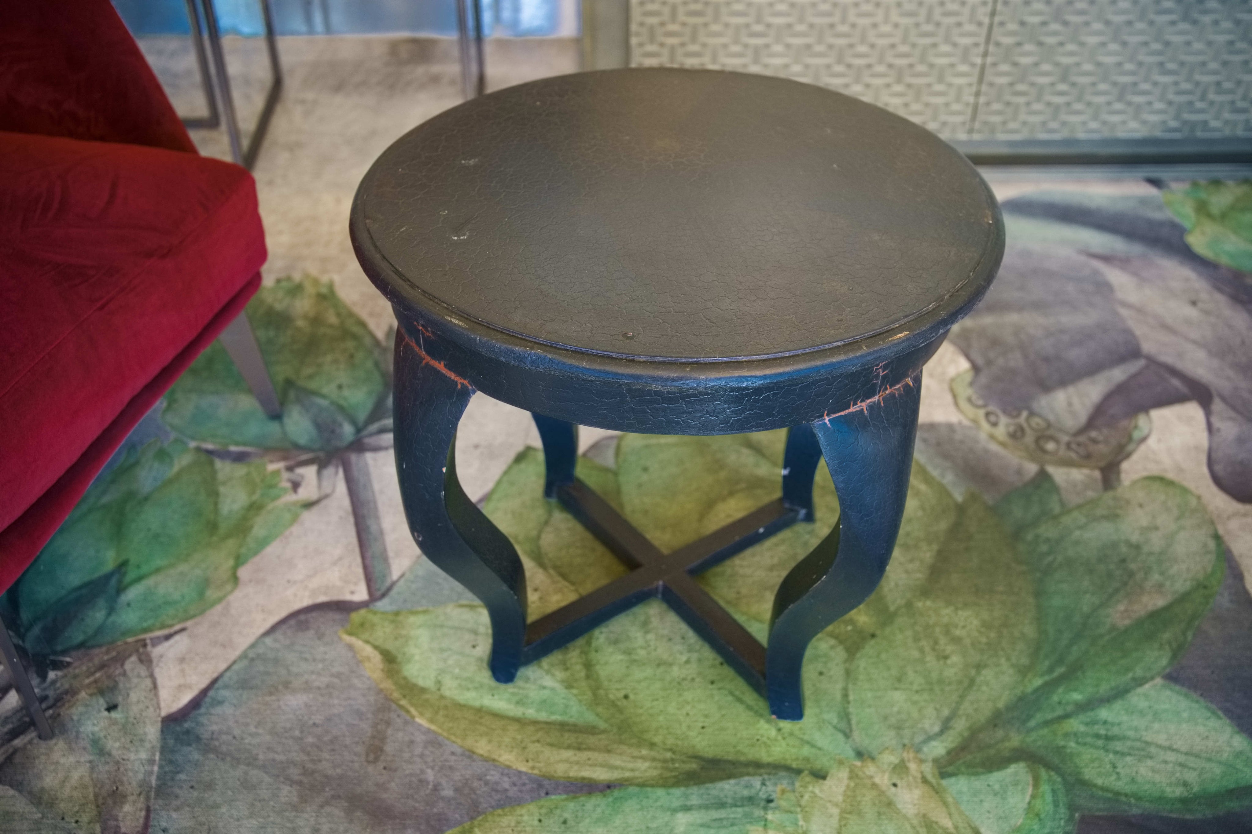 Tavolino indiano in legno massello di teak laccato nero su base di gesso
