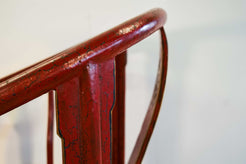 Trono Cinese Laccato Rosso, In Legno Di Olmo Curvato A Vapore Ed Assemblato Ad Incastro. Pezzo Unico Molto Raro E In...