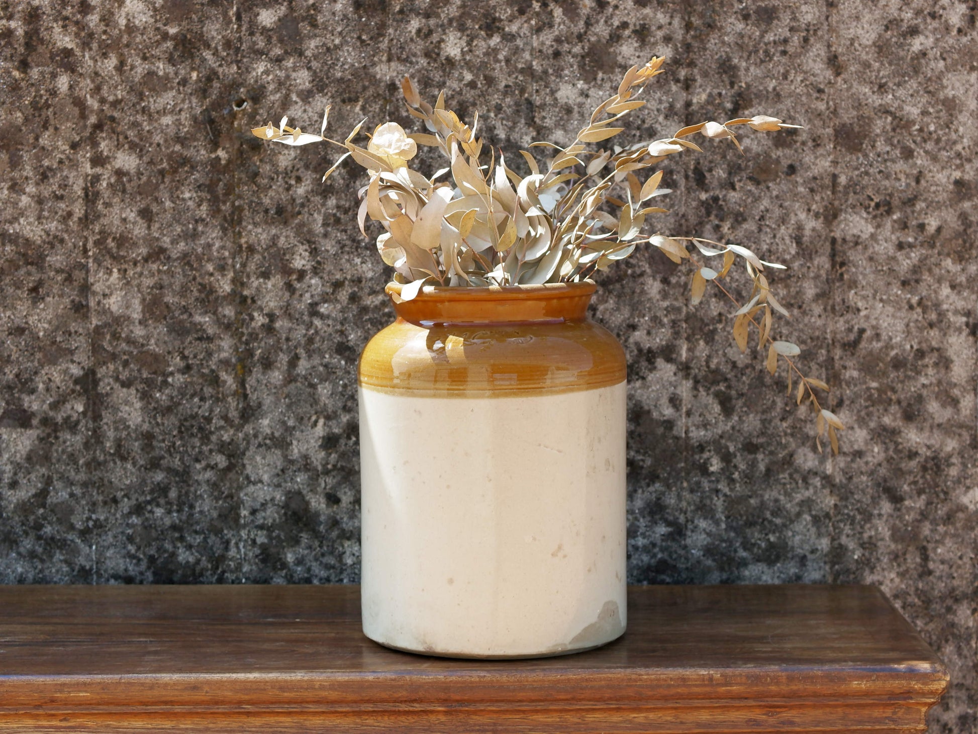 Vaso vintage in ceramica dipinto. Impiegati in India per il trasporto del latte. (venduto senza la componente floreale) Diametro 26 h19cm
