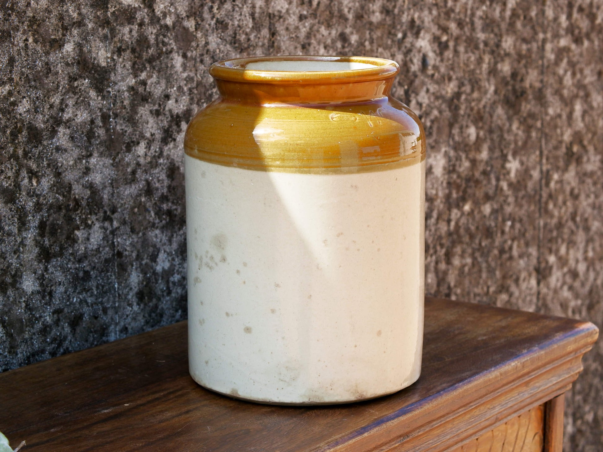 Vaso vintage in ceramica dipinto. Impiegati in India per il trasporto del latte. (venduto senza la componente floreal...