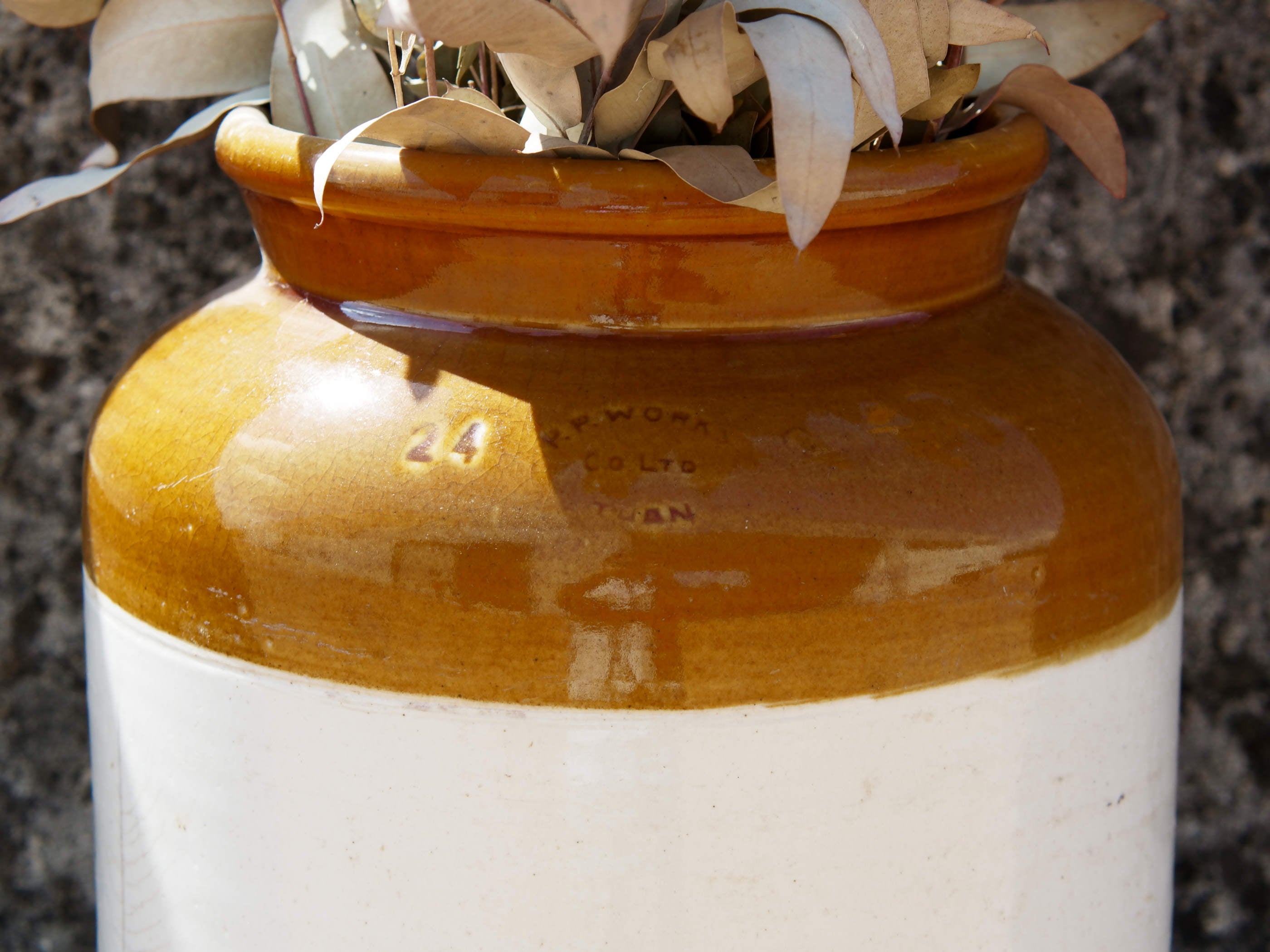 Vaso vintage in ceramica dipinto. Impiegati in India per il trasporto del latte. (venduto senza la componente floreale) Diametro 24 h 36 cm