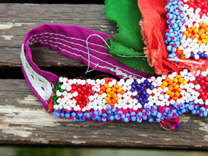 vecchio tessuto indiano ricamato, pezzo unico lavorato a mano in ogni parte con filo cotone, filo argento e perline ....